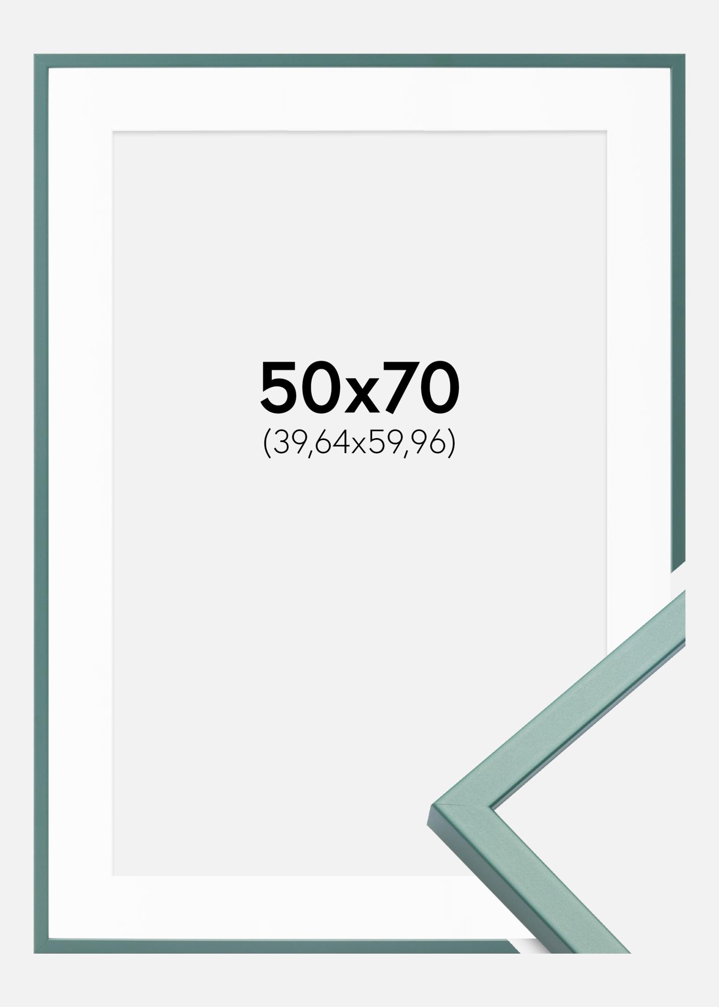 Rahmen E-Line Grün 50x70 cm - Passepartout Weiß 16x24 inches