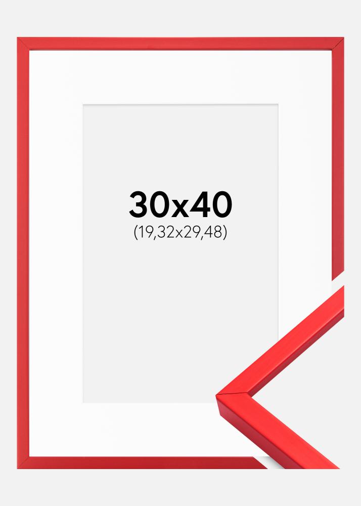 Rahmen E-Line Rot 30x40 cm - Passepartout Weiß 8x12 inches