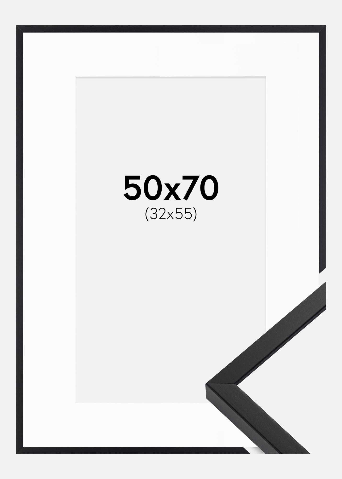 Rahmen E-Line Schwarz 50x70 cm - Passepartout Weiß 33x56 cm