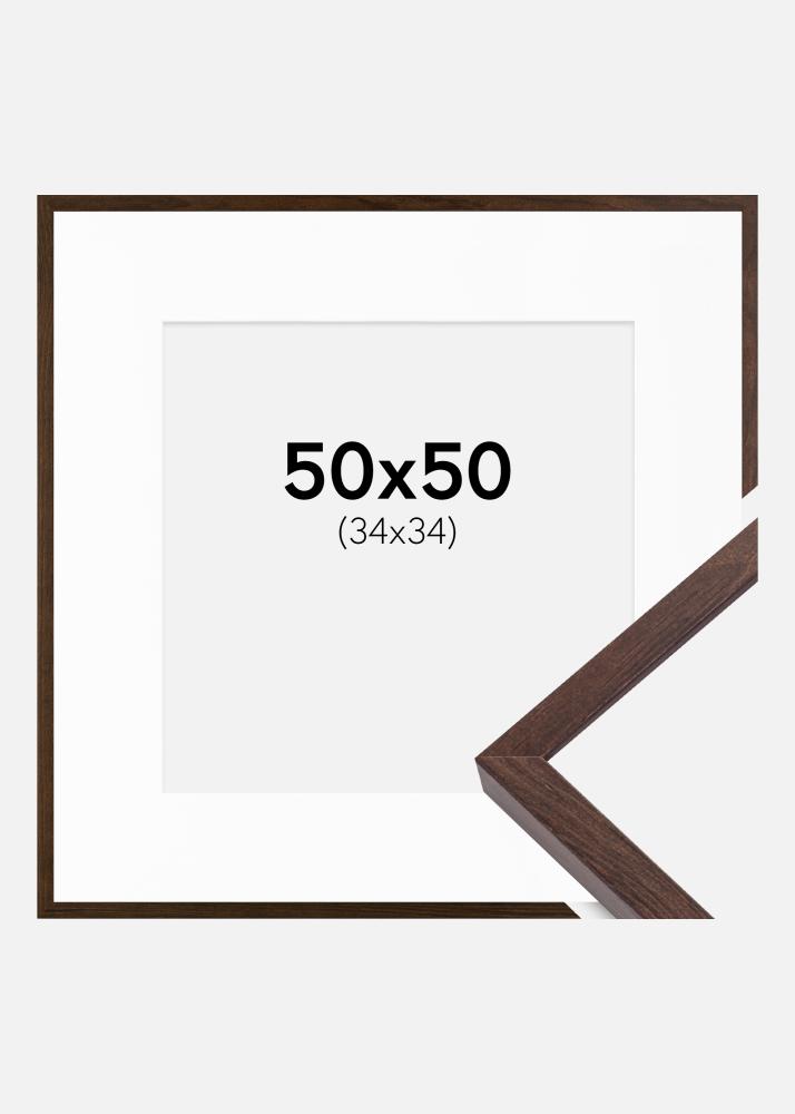 Rahmen E-Line Walnuss 50x50 cm - Passepartout Weiß 35x35 cm