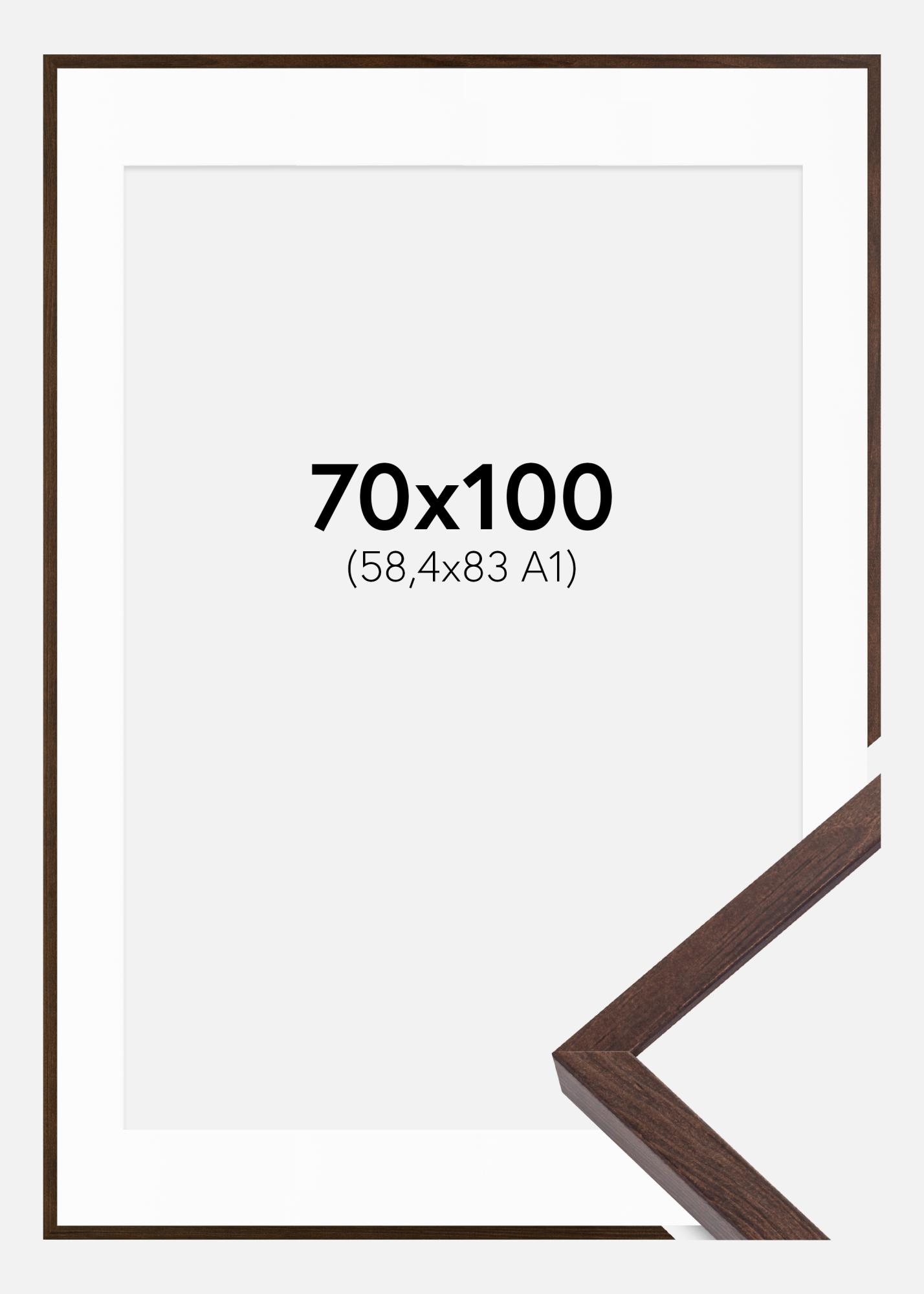 Rahmen E-Line Walnuss 70x100 cm - Passepartout Weiß 59,4x84 cm