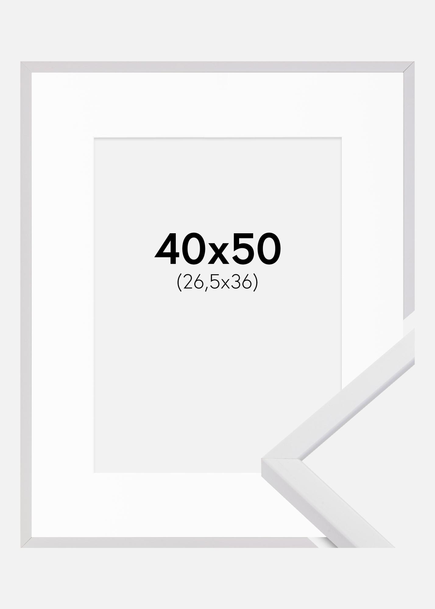 Rahmen E-Line Weiß 40x50 cm - Passepartout Weiß 27,5x37 cm