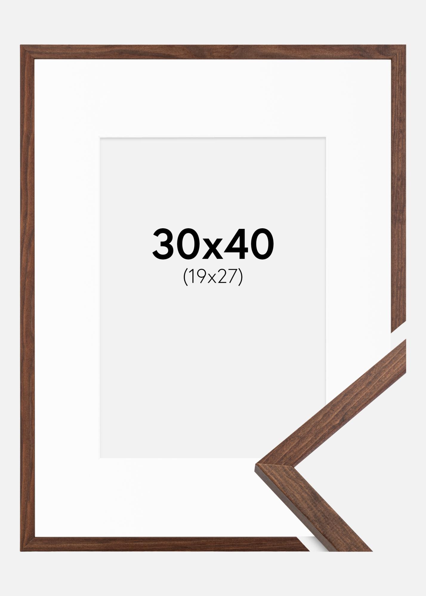 Rahmen Galant Walnuss 30x40 cm - Passepartout Weiß 20x28 cm