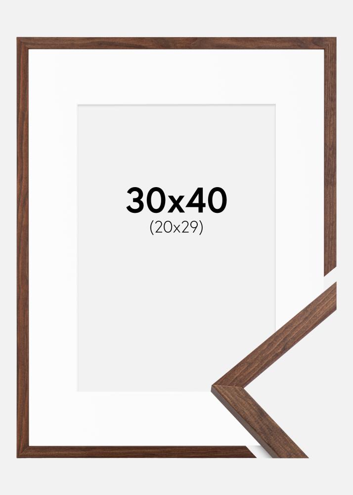 Rahmen Galant Walnuss 30x40 cm - Passepartout Weiß 21x30 cm