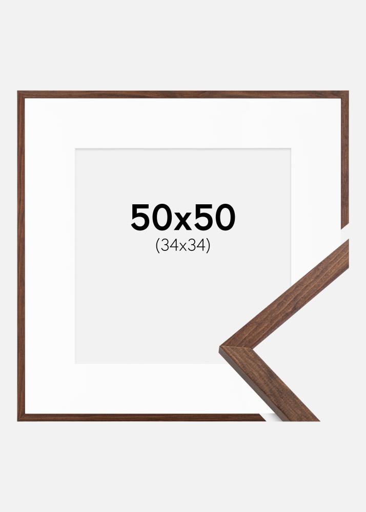 Rahmen Galant Walnuss 50x50 cm - Passepartout Weiß 35x35 cm