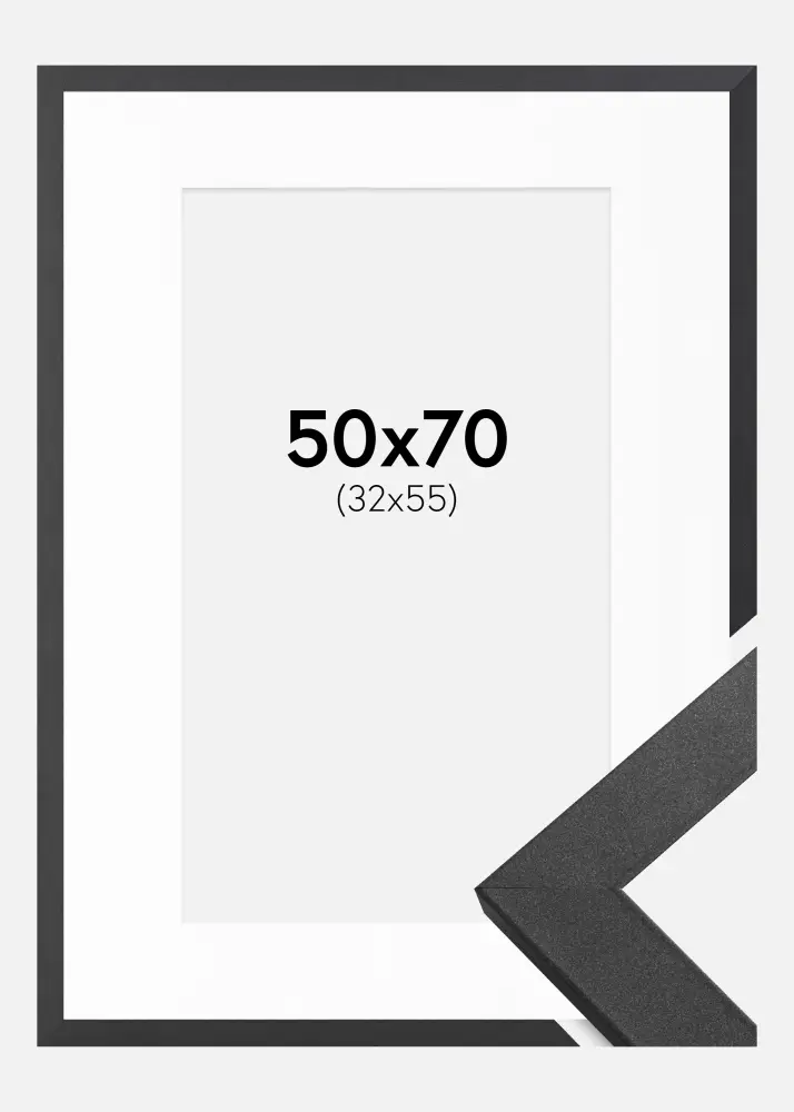 Rahmen Graphite Wood 50x70 cm - Passepartout Weiß 33x56 cm