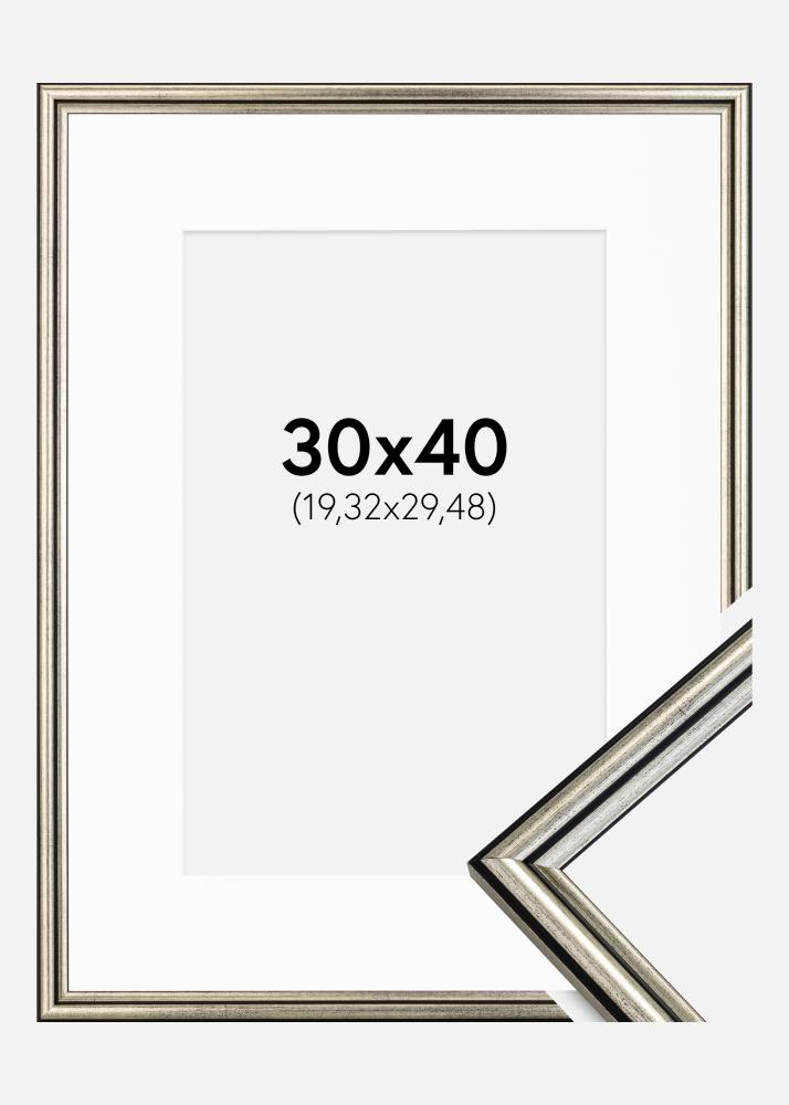Rahmen Horndal Silber 30x40 cm - Passepartout Weiß 8x12 inches
