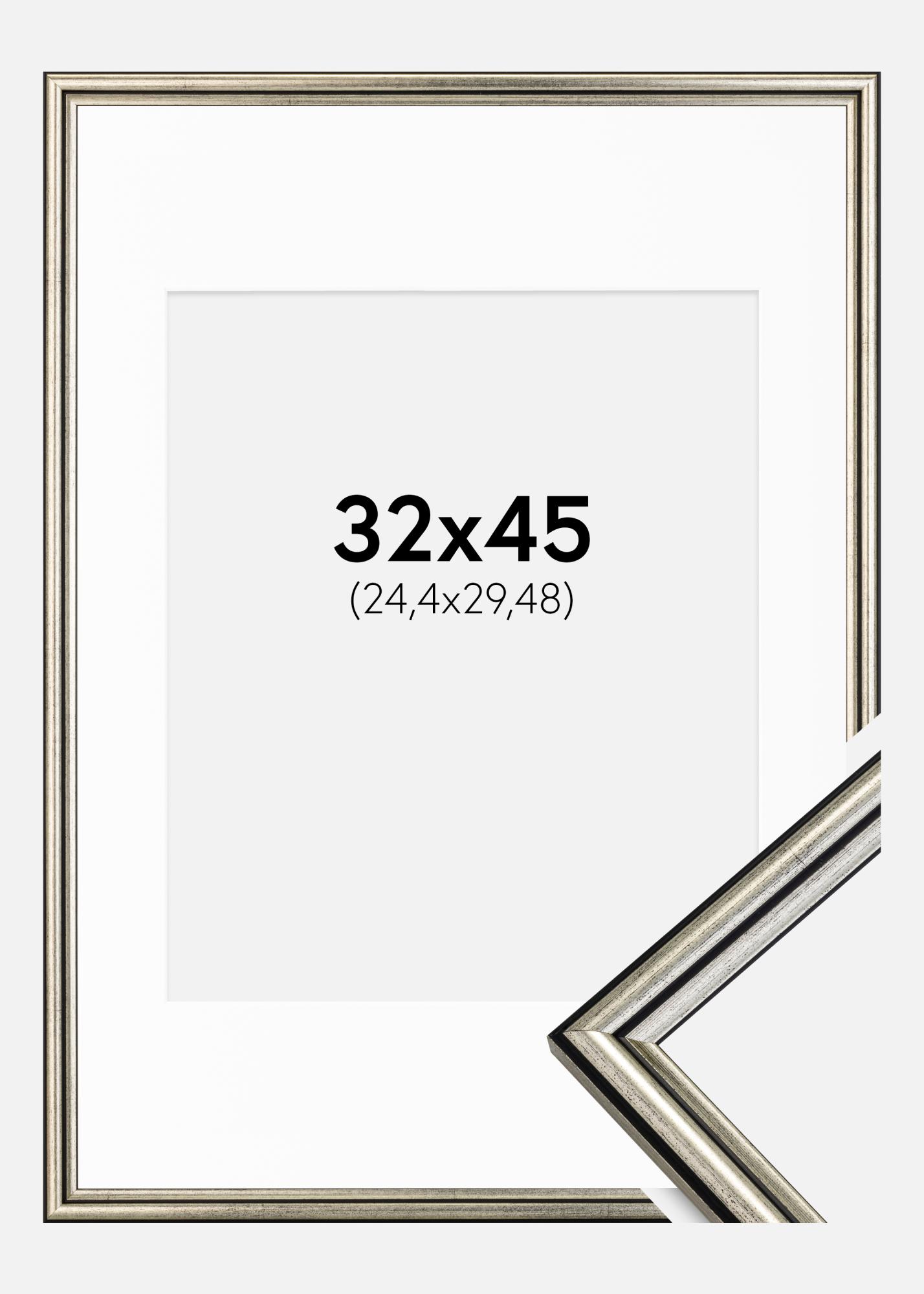 Rahmen Horndal Silber 32x45 cm - Passepartout Weiß 10x12 inches