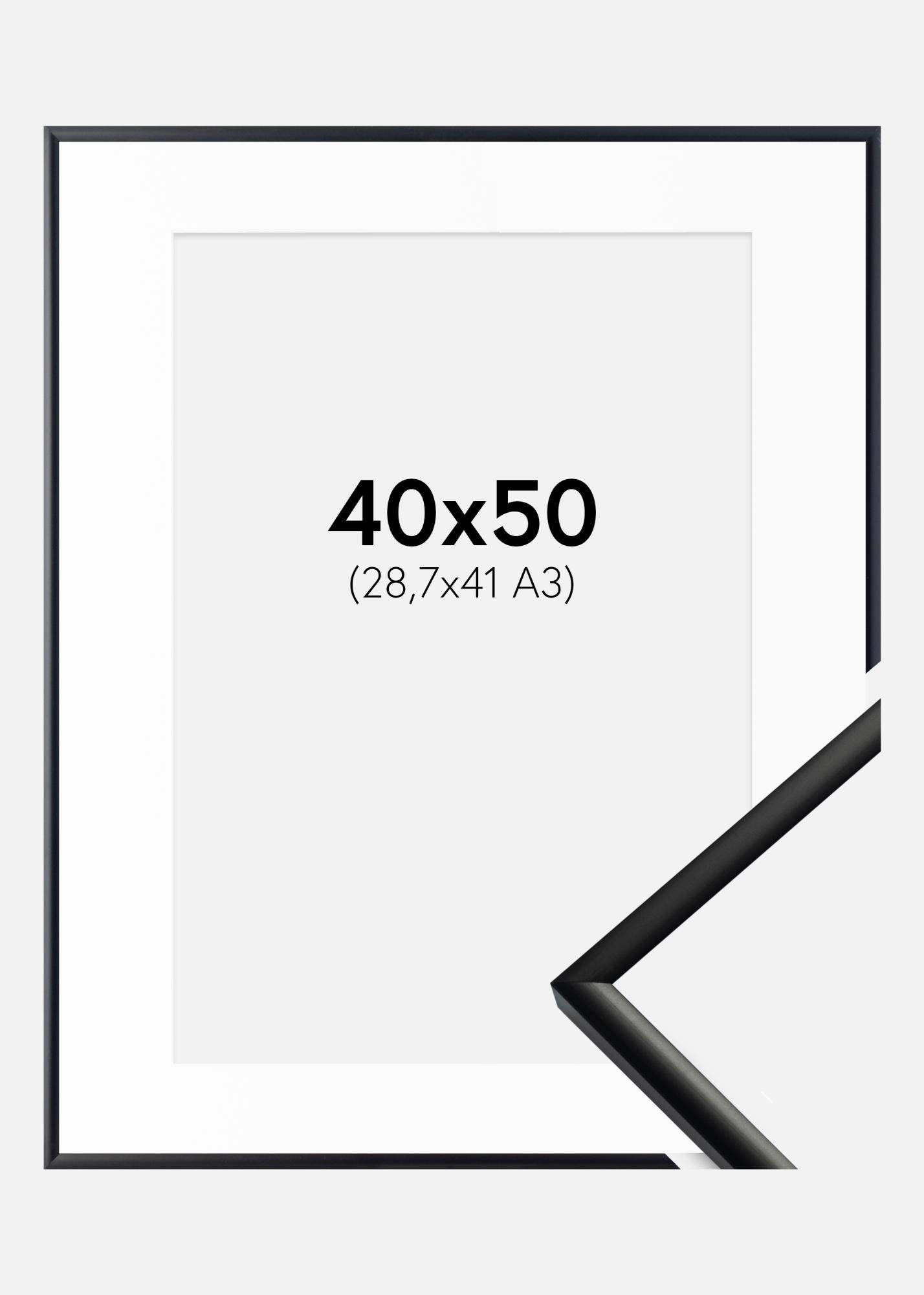 Rahmen New Lifestyle Matt Schwarz 40x50 cm - Passepartout Weiß 29,7x42 cm