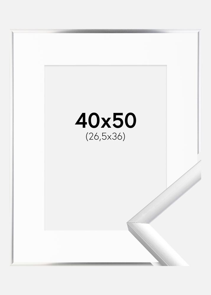 Rahmen New Lifestyle Silber 40x50 cm - Passepartout Weiß 27,5x37 cm