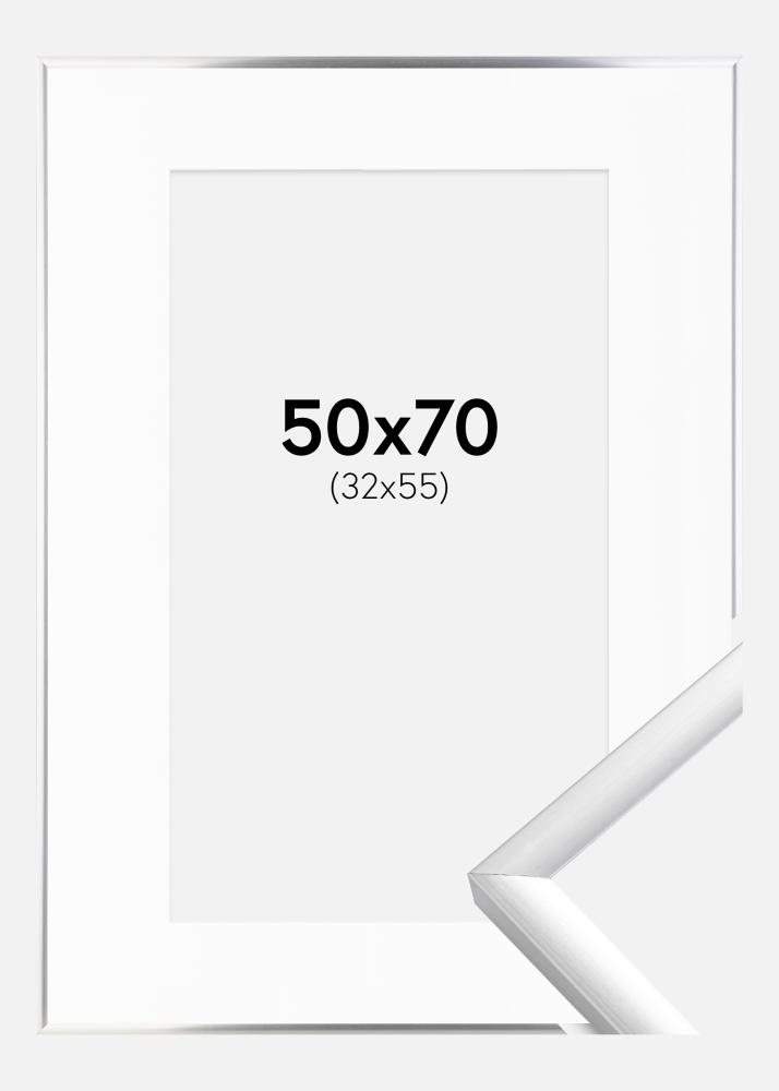 Rahmen New Lifestyle Silber 50x70 cm - Passepartout Weiß 33x56 cm