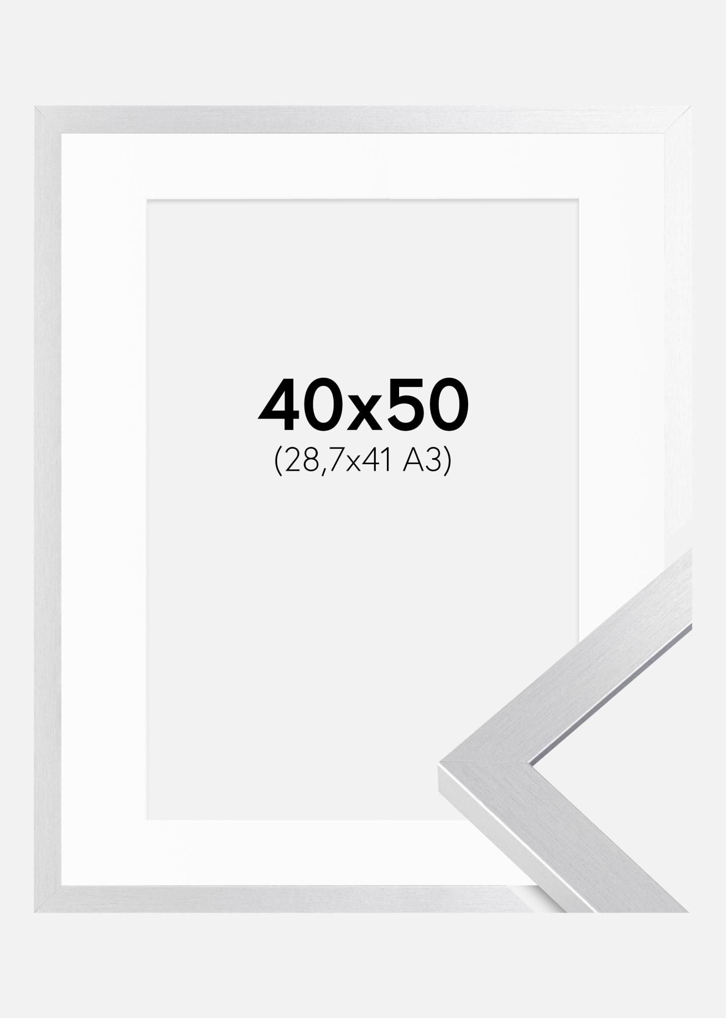 Rahmen Selection Silber 40x50 cm - Passepartout Weiß 29,7x42 cm (A3)