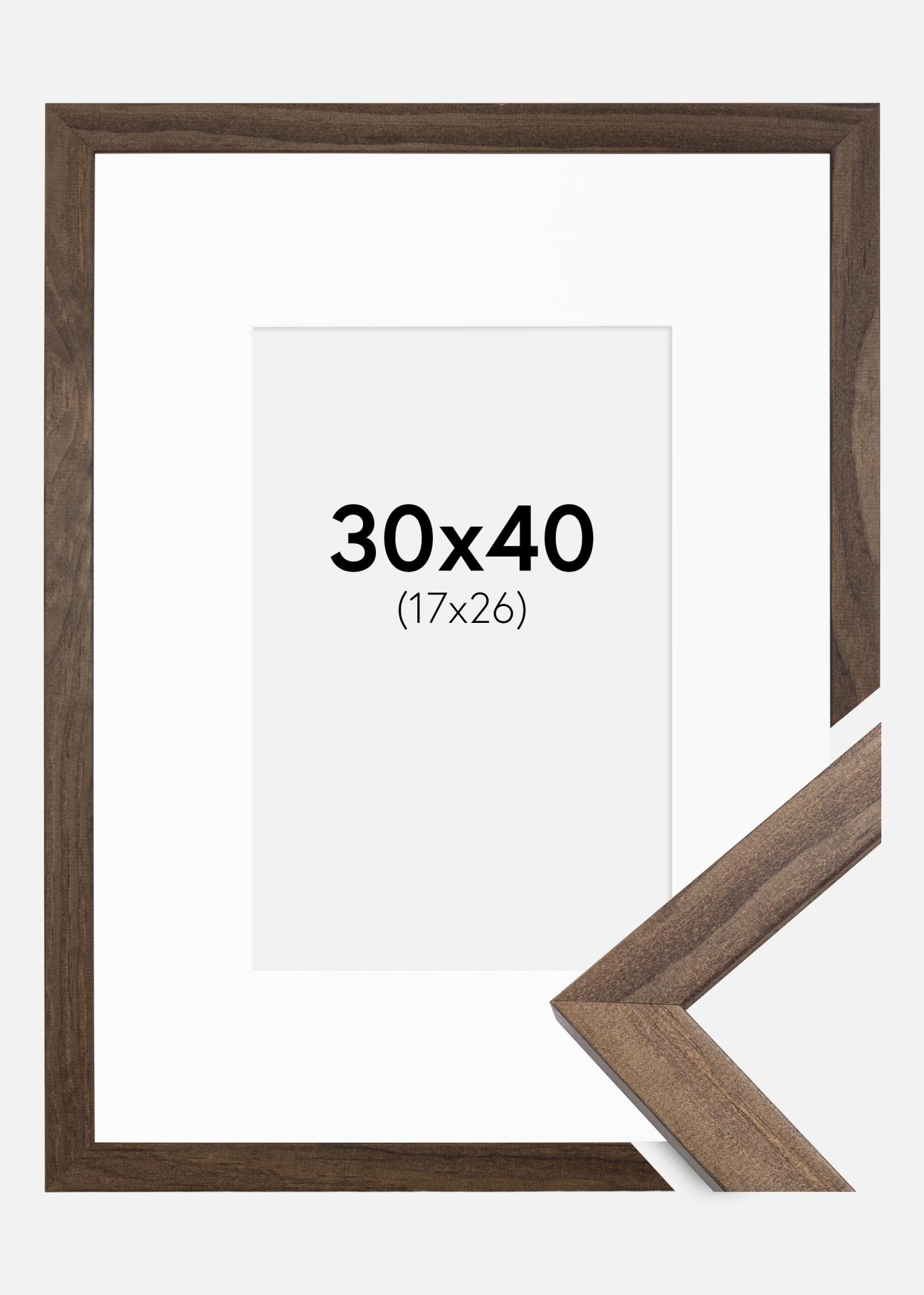 Rahmen Stilren Walnuss 30x40 cm - Passepartout Weiß 18x27 cm