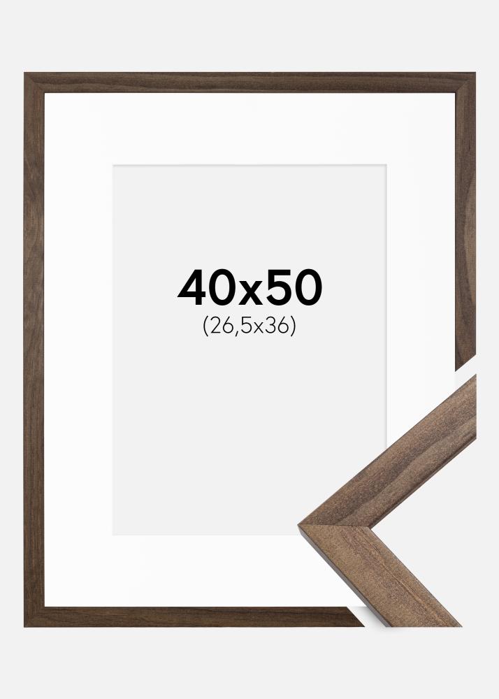 Rahmen Stilren Walnuss 40x50 cm - Passepartout Weiß 27,5x37 cm