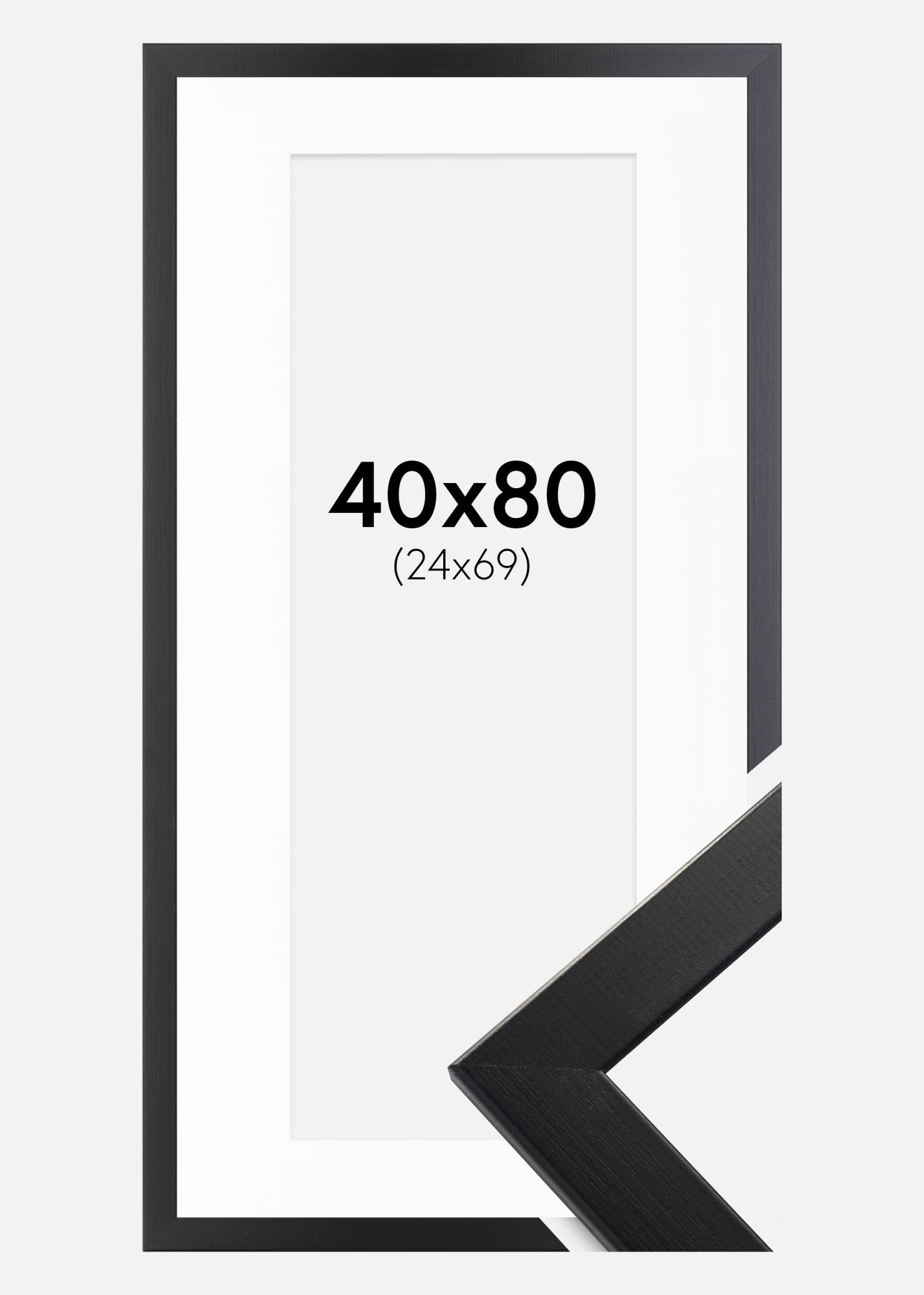 Rahmen Trendline Schwarz 40x80 cm - Passepartout Weiß 25x70 cm