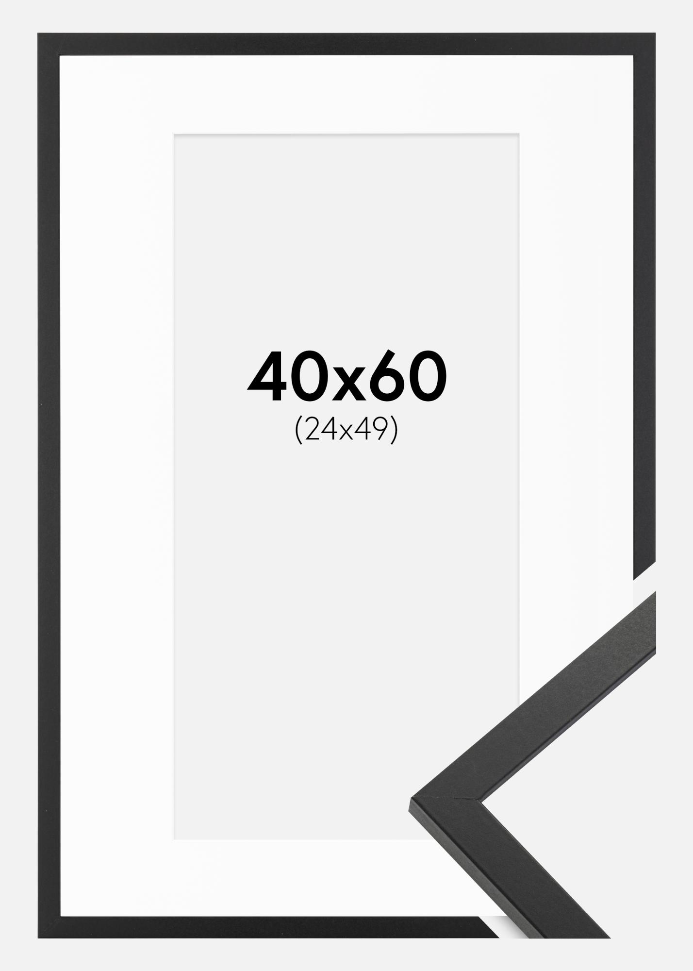 Rahmen Trendy Schwarz 40x60 cm - Passepartout Weiß 25x50 cm