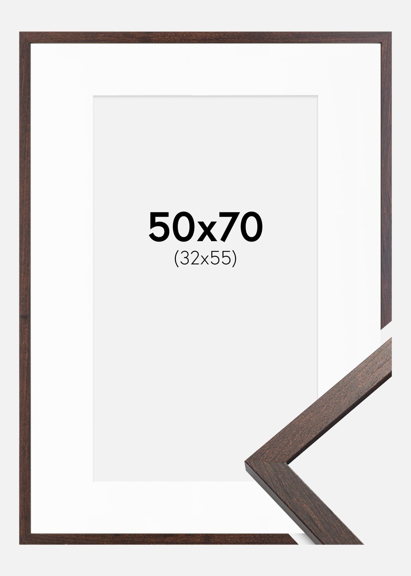 Rahmen Trendy Walnuss 50x70 cm - Passepartout Weiß 33x56 cm