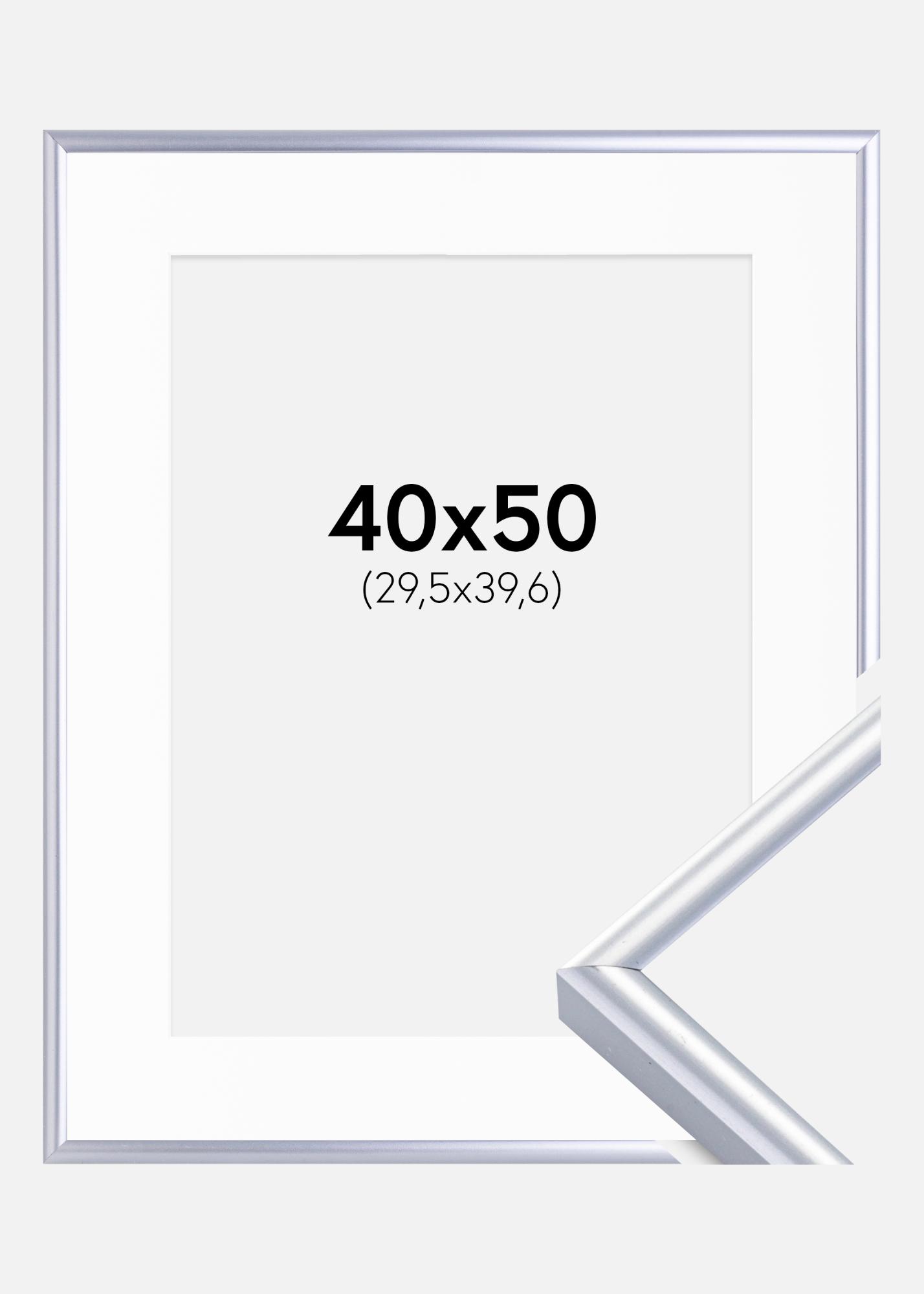 Rahmen Victoria Silber 40x50 cm - Passepartout Weiß 12x16 inches