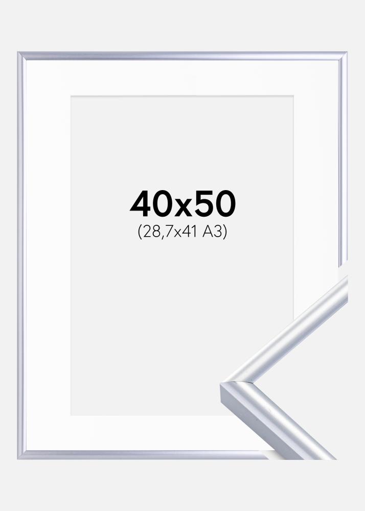 Rahmen Victoria Silber 40x50 cm - Passepartout Weiß 29,7x42 cm (A3)