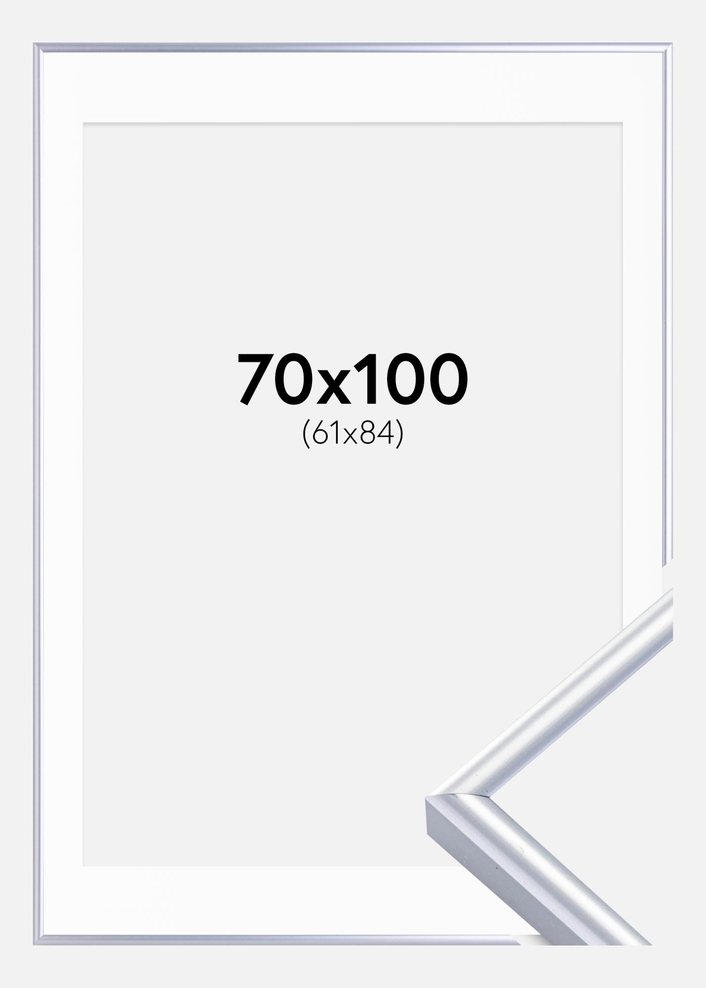Rahmen Victoria Silber 70x100 cm - Passepartout Weiß 62x85 cm