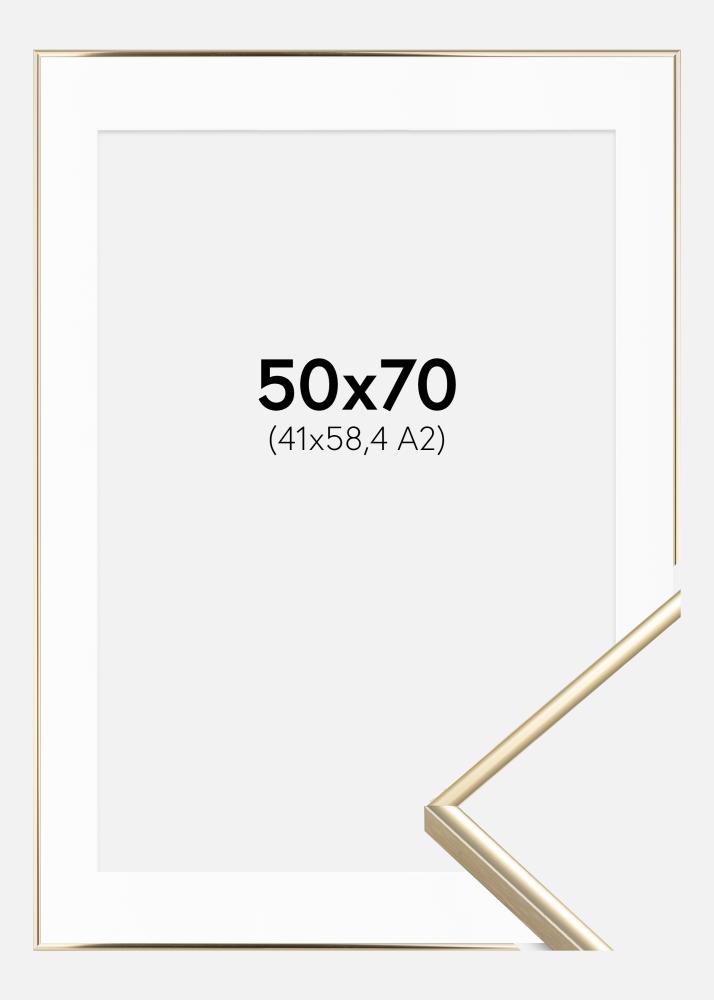 Rahmen Visby Gold Glänzend 50x70 cm - Passepartout Weiß 42x59,4 cm (A2)
