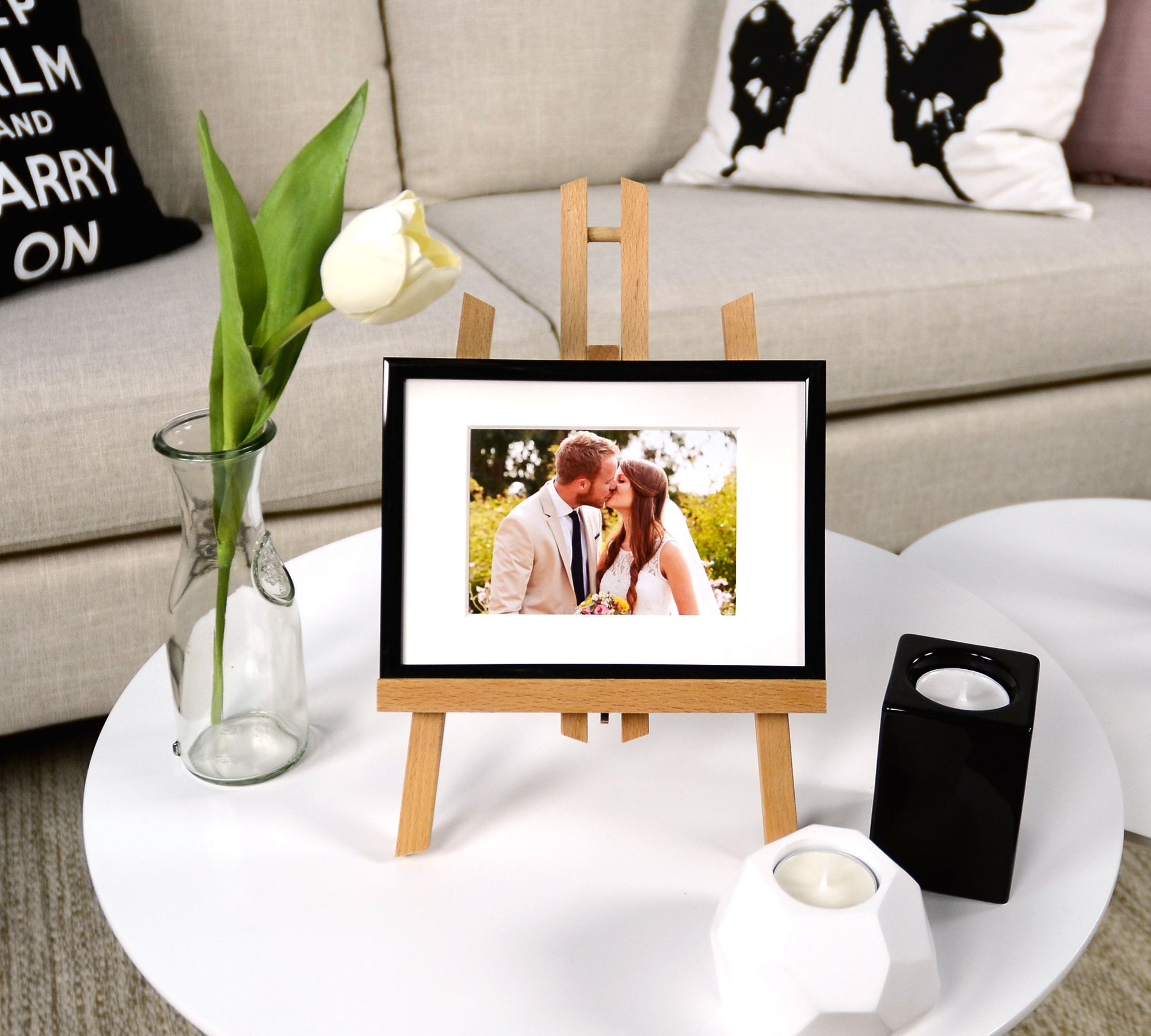 Stilvolle Staffelei aus Holz, eine perfekte Alternative, wenn du deine Bilder ganz unkompliziert präsentieren möchtest, ohne sie an die Wand hängen zu müssen.