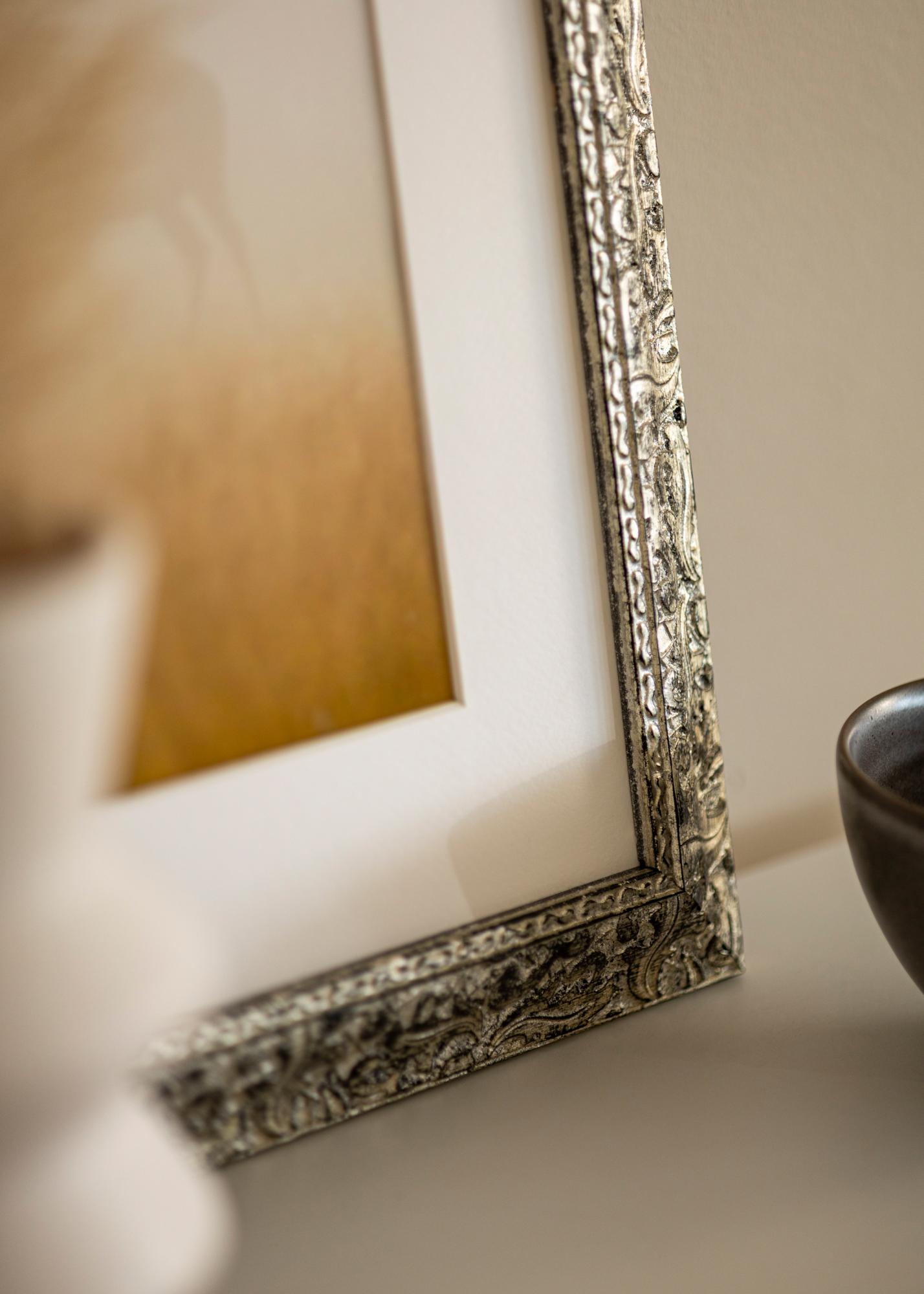 "Ralph Silber" ist ein schicker hochwertiger Bilderrahmen im Retro-Stil, hergestellt in Italien. Mit seinem üppig dekorierten Profil eignet er sich perfekt für Bilder, die du besonders gerne magst.