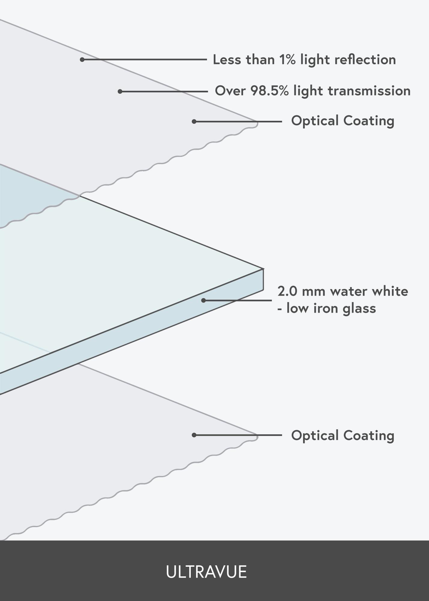 Reflexfreies glas 70x70 cm (UltraVue UV70)
