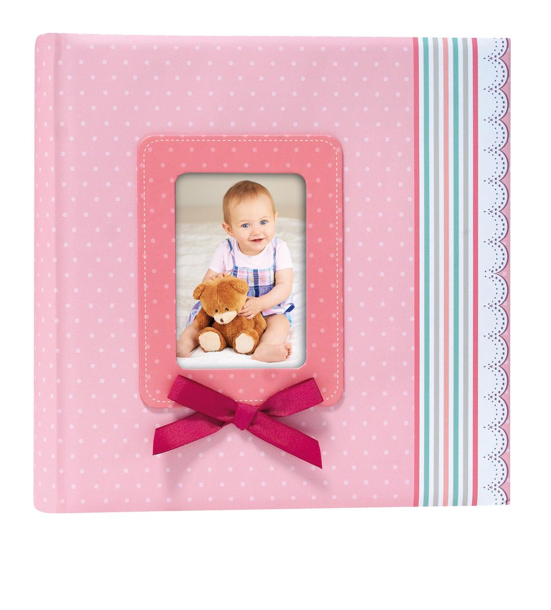 Hol dir ein zuckersüßes Fotoalbum für ein zuckersüßes Baby! Dieses Album ist in Rosa mit verschiedenen anderen hübschen Farbtönen gehalten. Der Umschlag ist pastellrosa mit hellen Punkten. Auf der Vorderseite befindet sich eine Bildöffnung, die von einem dekorativen Teil in dunklerem Rosa mit hellen Punkten, weißen Nähten und einer dunkelrosa Textilschleife umrahmt ist. Auf einer Seite verläuft ein breites Band mit einem weißen Rüschenmuster ganz außen und Streifen in den Farben rosa, türkis, grau und Lachsrosa. Die Titelseite trägt ein süßes Motiv mit Punkten, eine Wäscheleine, den Text "Baby" und 4 Zeilen, auf die du etwas schreiben kannst. Darüber hinaus enthält das Album 40 weiße Seiten, auf die du Bilder und andere süße Erinnerungen einkleben kannst.