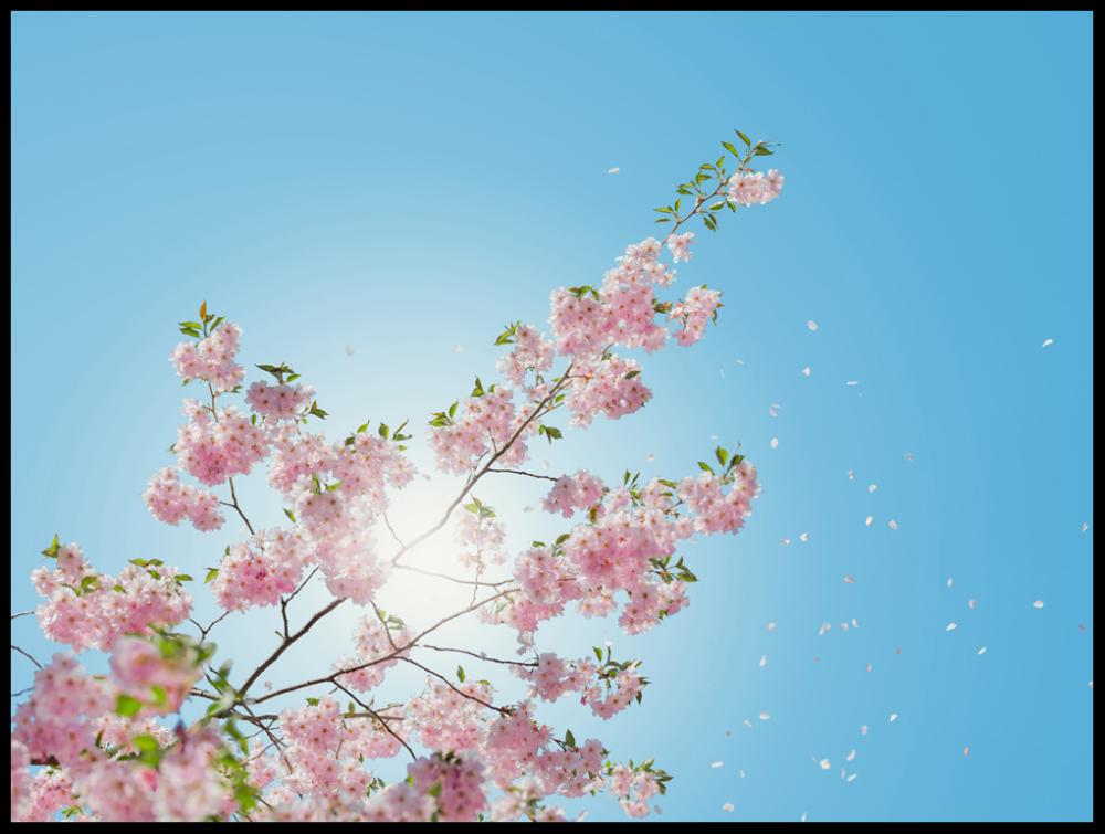 Nichts sorgt so schnell für Frühlingsgefühle wie rosa Kirschblüten, die in der wiedererwachenden Natur auf den Boden fallen. Das Foto ist gegen die klare Frühlingssonne aufgenommen, und die Froschperspektive erzeugt das Gefühl, als würde man unter dem Baum auf dem Boden liegen. In einem dekorativen Rahmen kommt das Poster wunderbar allein zu seinem Recht, es kann aber auch mit anderen Blumenmotiven zu einer Bilderwand kombiniert werden.