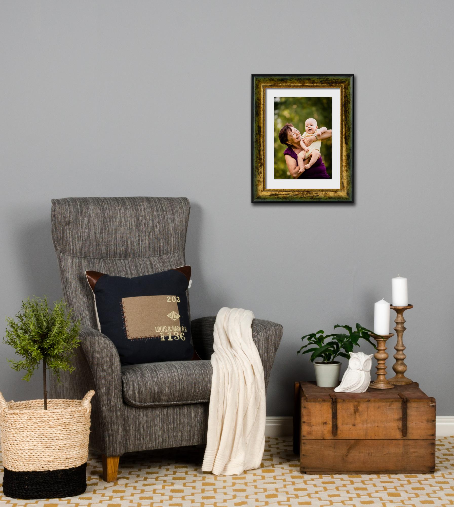 Wir haben selten einen Rahmen mit einem so ein spannendes Design gesehen! Dieser wunderschöne Bilderrahmen hat schwarze Kanten und eine goldfarbene Oberfläche mit abgenutzt aussehenden Details. Zusammen mit deinen schönsten Bildern kannst du ein charaktervolles Gemälde erschaffen, dass sowohl in altmodische als auch in bohemische Einrichtungsstile passt. Da der Bilderrahmen in unserer eigenen Rahmenwerkstatt hergestellt wird, kannst du sicher sein, dass er genau dorthin passt, wo du ihn haben willst.