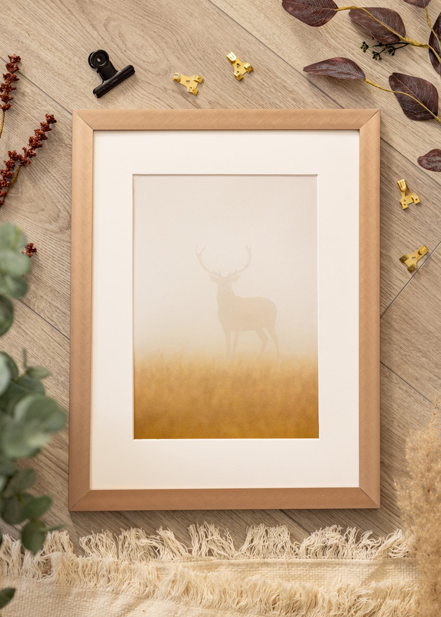 Bronzener minimalistischer Aluminiumrahmen, mit dem sich ein Schwarzweißfoto oder ein grafisches Poster wunderschön einrahmen lässt. Mit seiner warmen Farbe kann der Bilderrahmen eine Einrichtung ausgleichen, die ansonsten eher kühlere Farben hat und das elegante Design des Bilderrahmens passt zu jedem Einrichtungsstil, eignet sich aber besonders gut für eine stilvolle skandinavische Ausstattung. Ergänze den Rahmen mit einem Passepartout, um das Bild noch besser hervorzuheben.