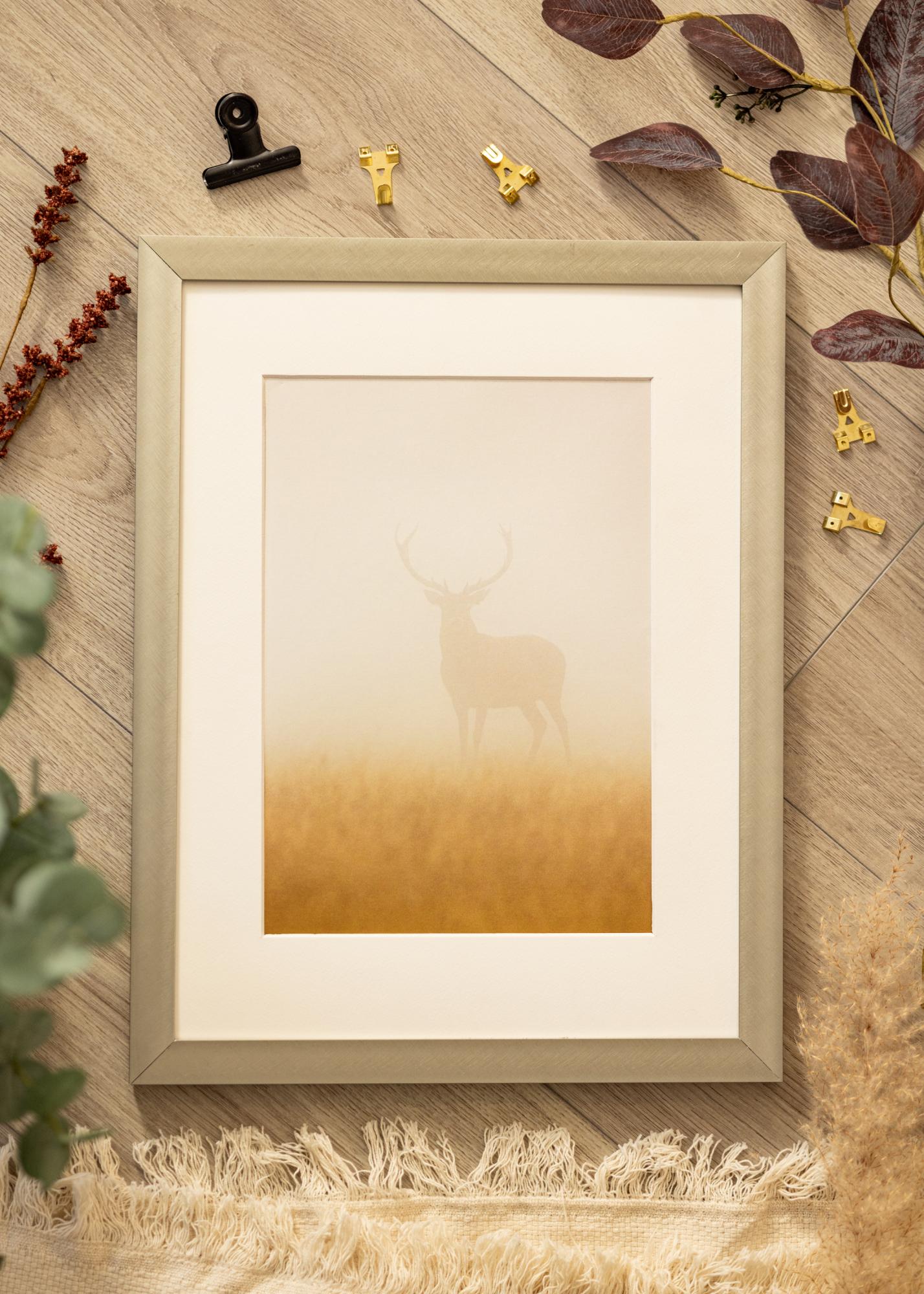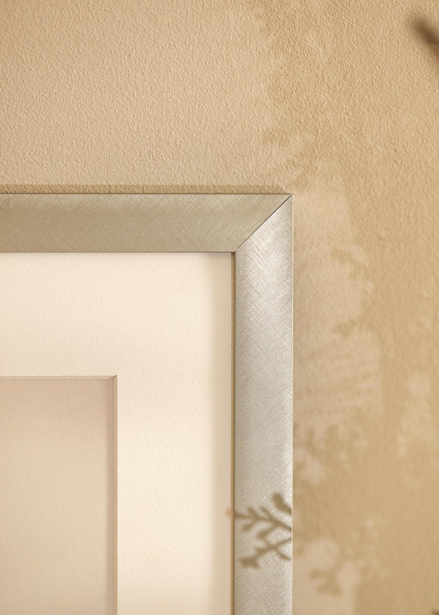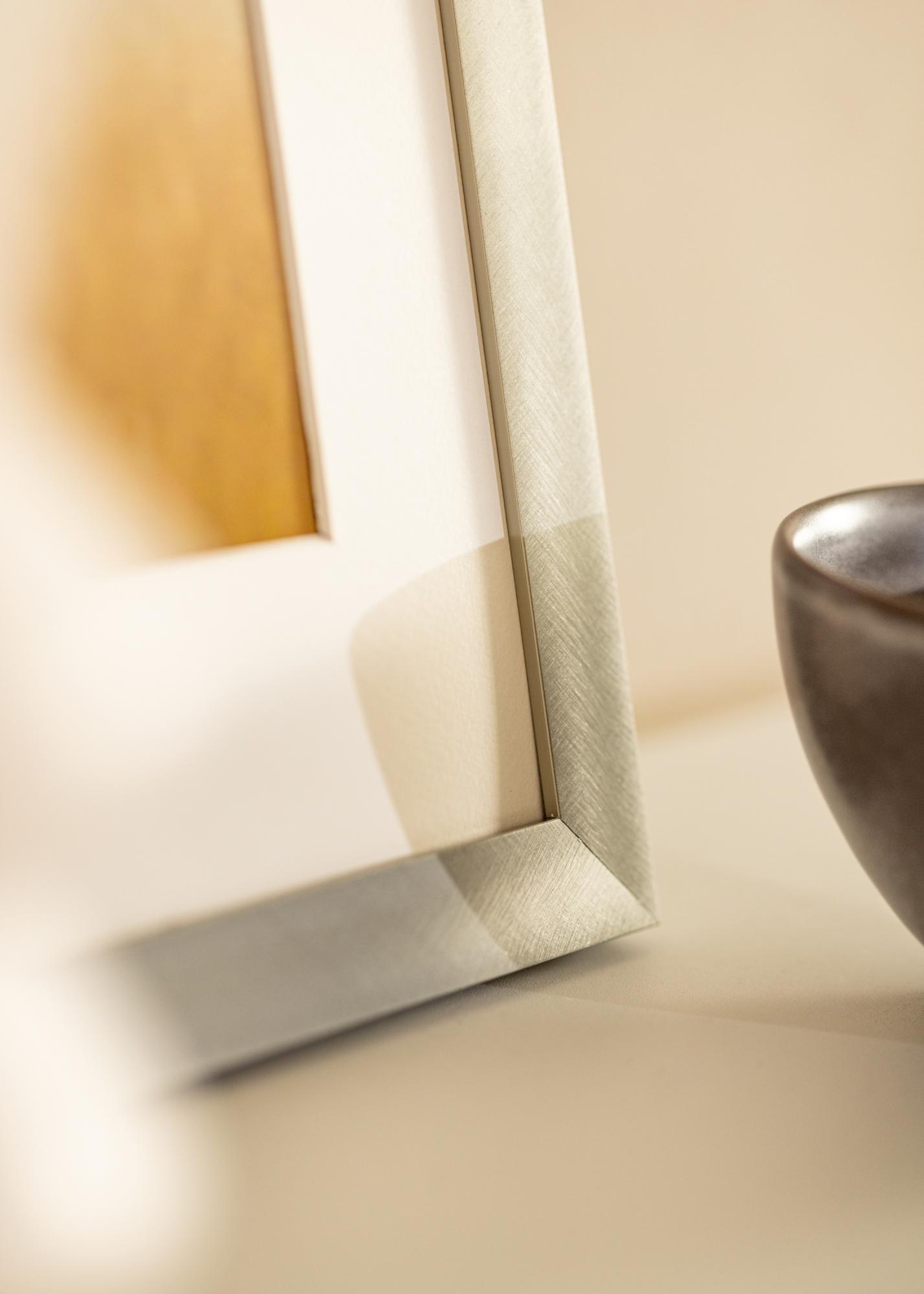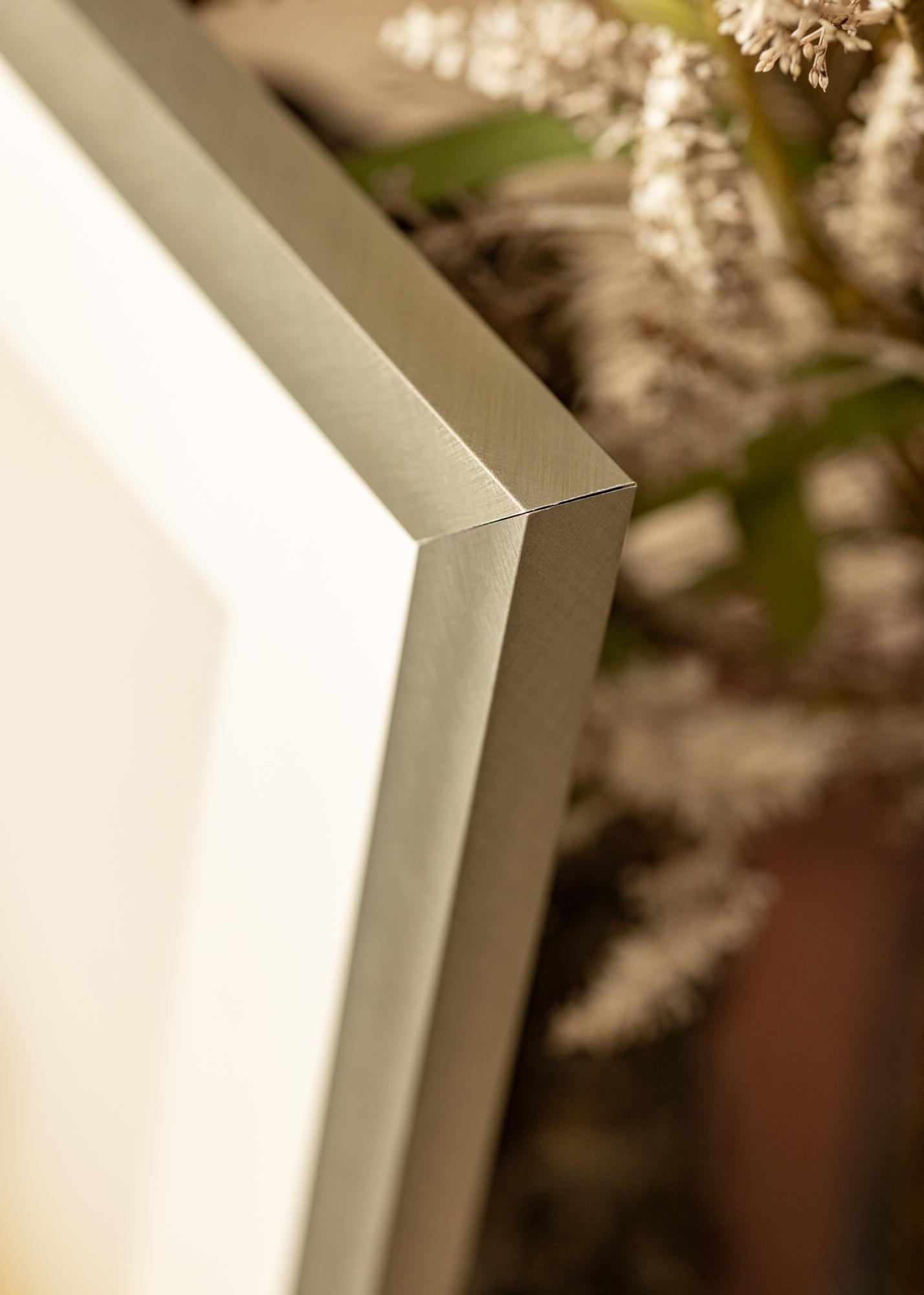 Hübscher und moderner Rahmen aus gebürstetem Aluminium, der durch seine neutrale Farbe für alle Arten von Fotografien, Postern sowie Aquarellen geeignet ist. Durch das dezente Erscheinungsbild fügt sich dieser Bilderrahmen in die meisten Einrichtungen ein, passt aber besonders gut zu einem kühlen skandinavischen Stil. Trotz seines schlanken Designs fühlt sich der Bilderrahmen robust und stabil an. Bestelle am besten auch ein Passepartout, das den Rahmen ergänzt und das Bild auf elegante Weise hervorhebt. Hänge das Bild gemeinsam mit anderen Motiven in Metallrahmen auf.