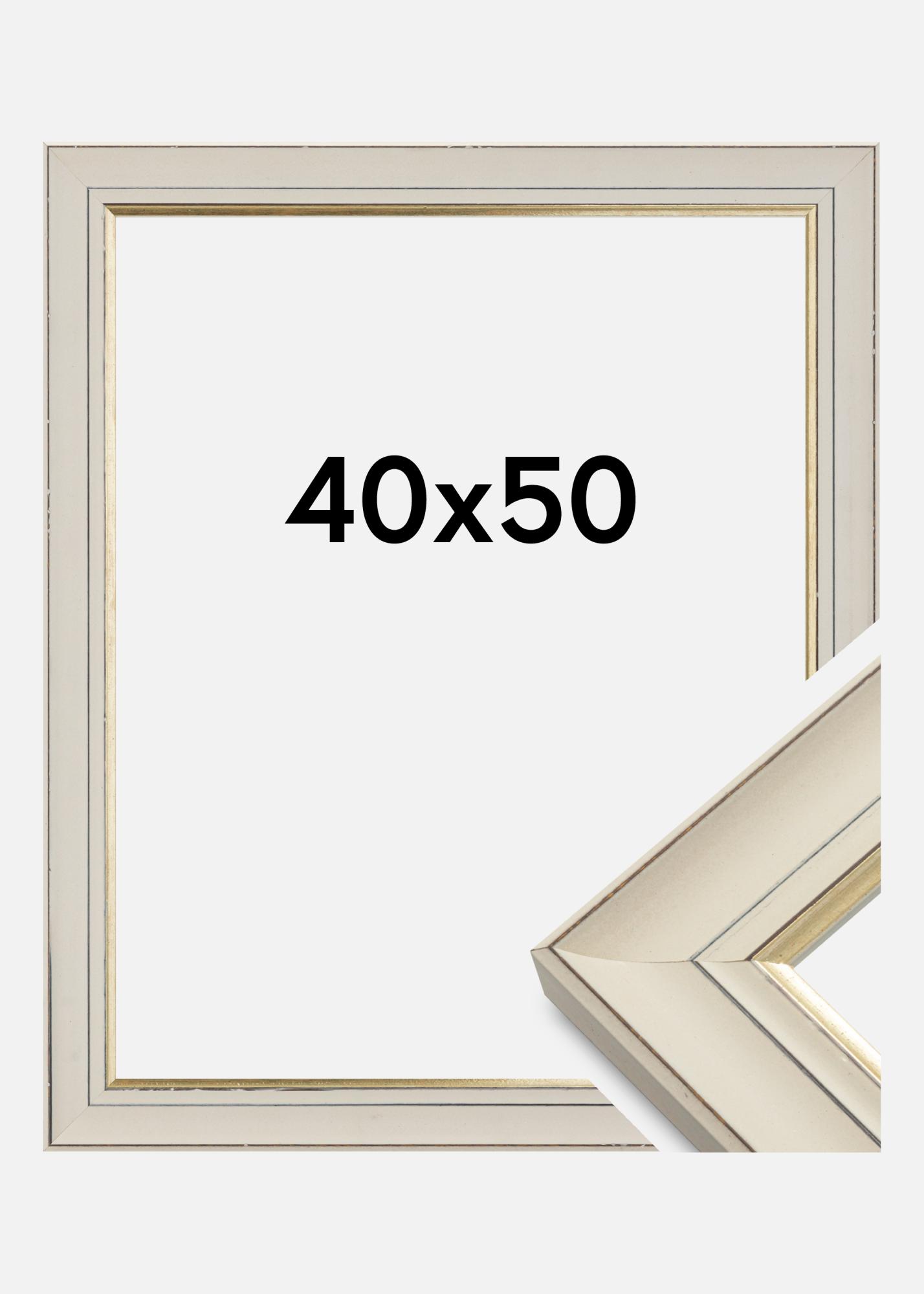 Fotorahmen im klassischen Stil mit tollem Retro-Flair. Das Profil des Bilderrahmens hat einen abgenutzten Look in Weiß mit einem hübschen Goldrand, der direkt neben dem Motiv verläuft. Mit seinem neutralen Design und seiner Farbauswahl passt dieser Bilderrahmen in nahezu jede Umgebung und zu jeder Art von Motiv.