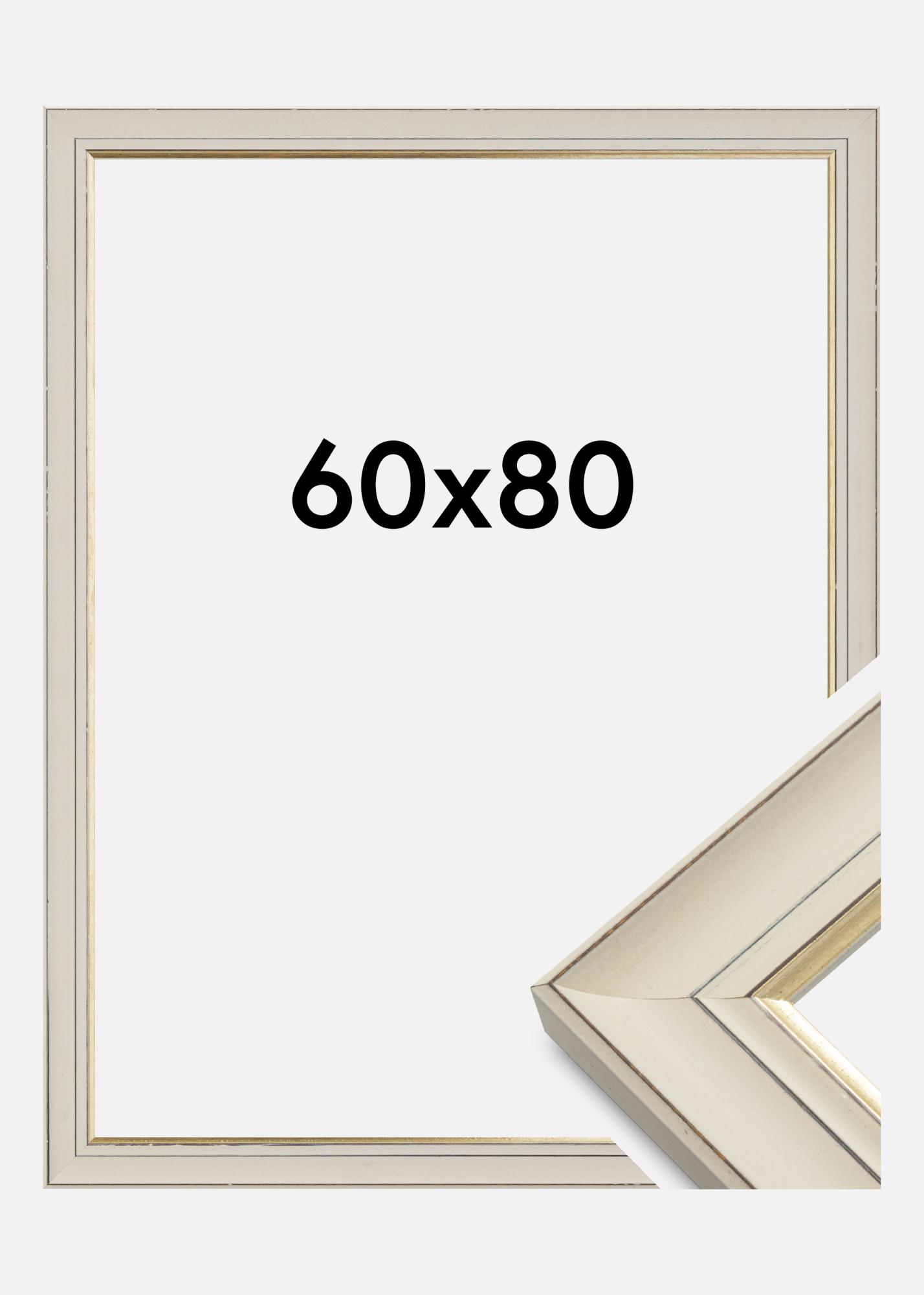 Fotorahmen im klassischen Stil mit tollem Retro-Flair. Das Profil des Bilderrahmens hat einen abgenutzten Look in Weiß mit einem hübschen Goldrand, der direkt neben dem Motiv verläuft. Mit seinem neutralen Design und seiner Farbauswahl passt dieser Bilderrahmen in nahezu jede Umgebung und zu jeder Art von Motiv.