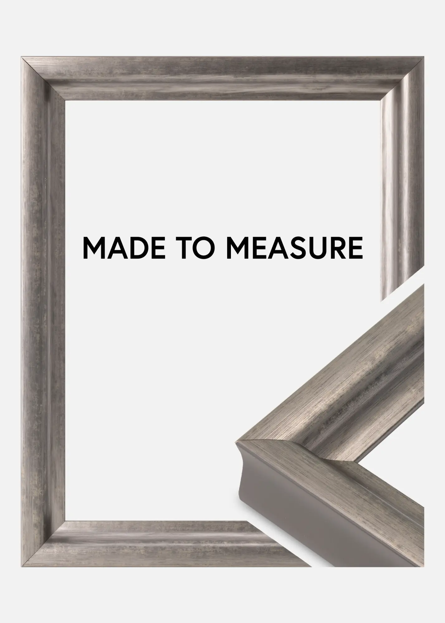 Klassischer Rahmen, dessen Größe du selbst bestimmen kannst. Mit seinem breiten und tiefen Profil fällt dieser Bilderrahmen garantiert auf. Der Bilderrahmen ist in einem silberfarbenen Bleistiftton mit angenehmen Farbwechseln gehalten und passt gut zu Bildern, denen du besondere Aufmerksamkeit schenken möchtest.