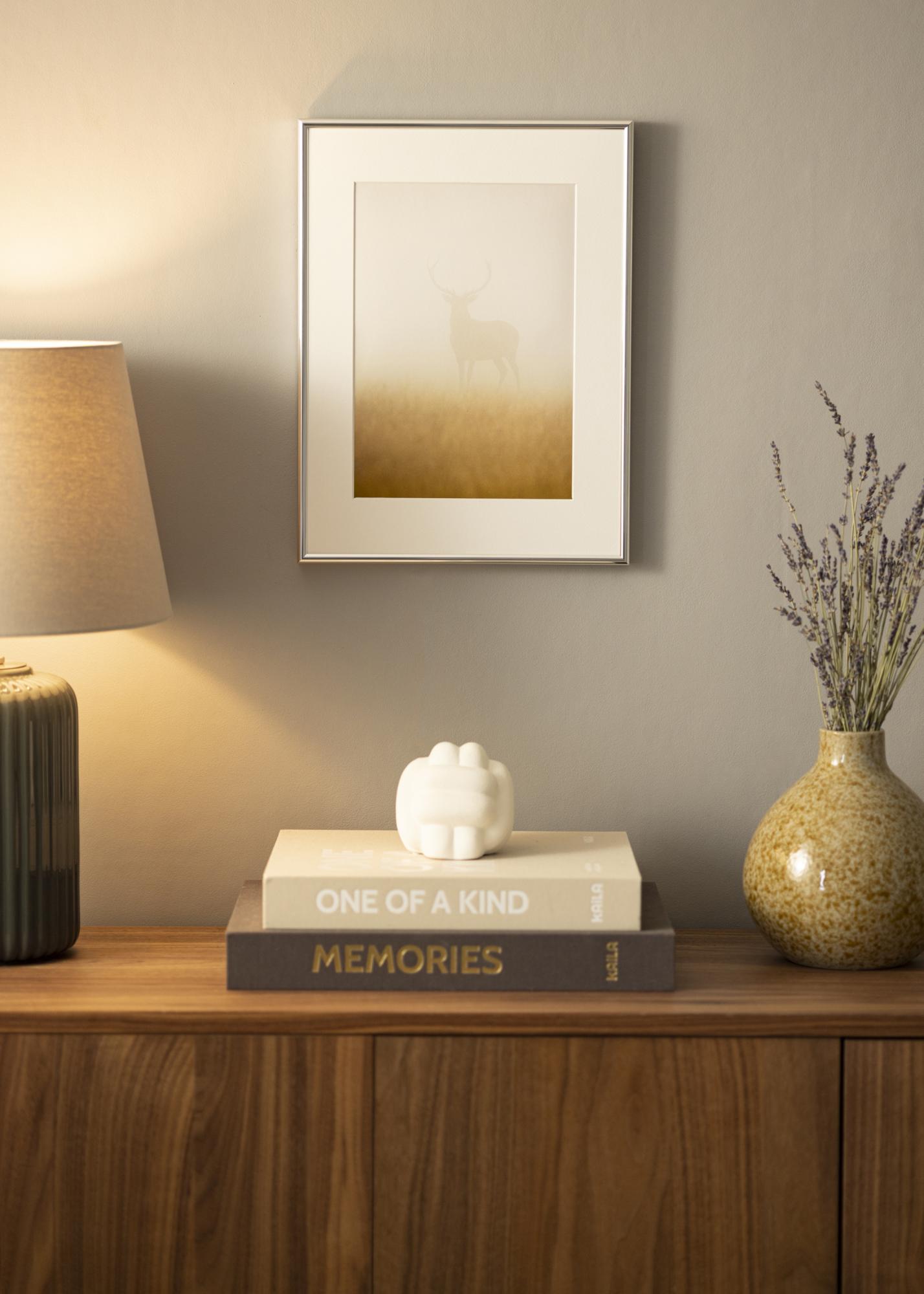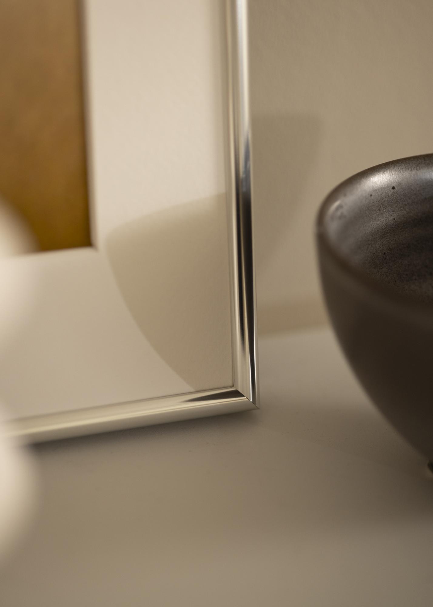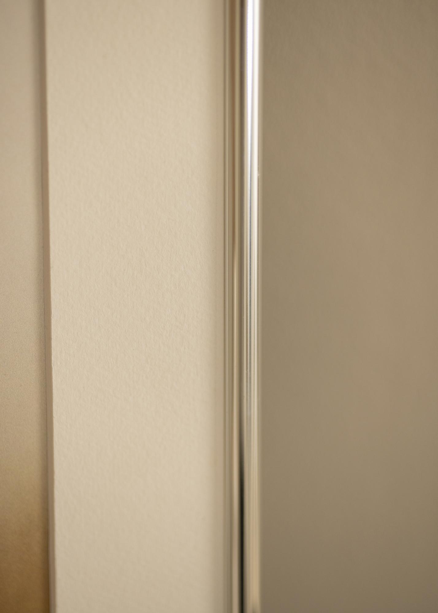 Moderner hochglänzender Silberrahmen mit gebürsteten Seiten und einem tiefen Profil von 26 mm. Dadurch sticht das Motiv aus der Wand hervor und erzeugt einen tollen 3D-Effekt. Perfekt, wenn du einen schlichten Silberrahmen suchst, der deine Bilder auf elegante Weise umgibt.