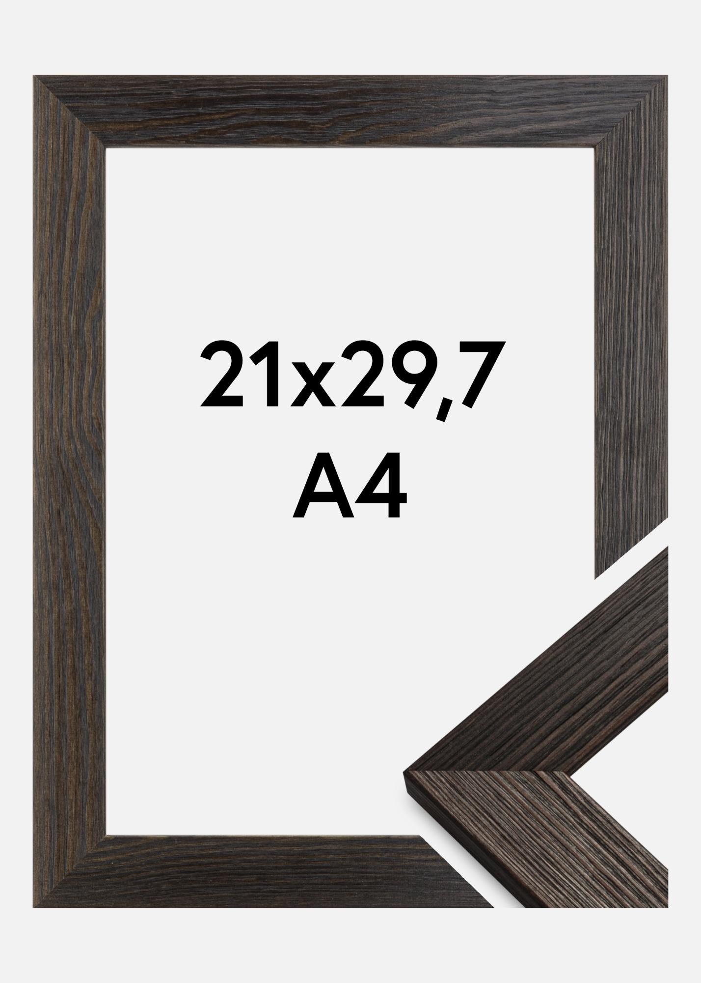 Gediegener brauner Holzrahmen mit sichtbarer Holzmaserung und einem breiten Profil. Perfekt, wenn du einen dunklen Holzrahmen suchst, der ein natürliches Gefühl verleiht. Gut geeignet für Ambientefotos und Landschaftsbilder.