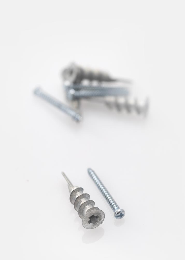 Selbstbohrende Trockenbauanker im 4er-Pack. Einfach den Dübel und dann die Schraube einschrauben und schon bist du fertig. Kein Bohren notwendig. Passt perfekt zu all unseren Bilderrahmen, die an einer Gipswand befestigt werden sollen.