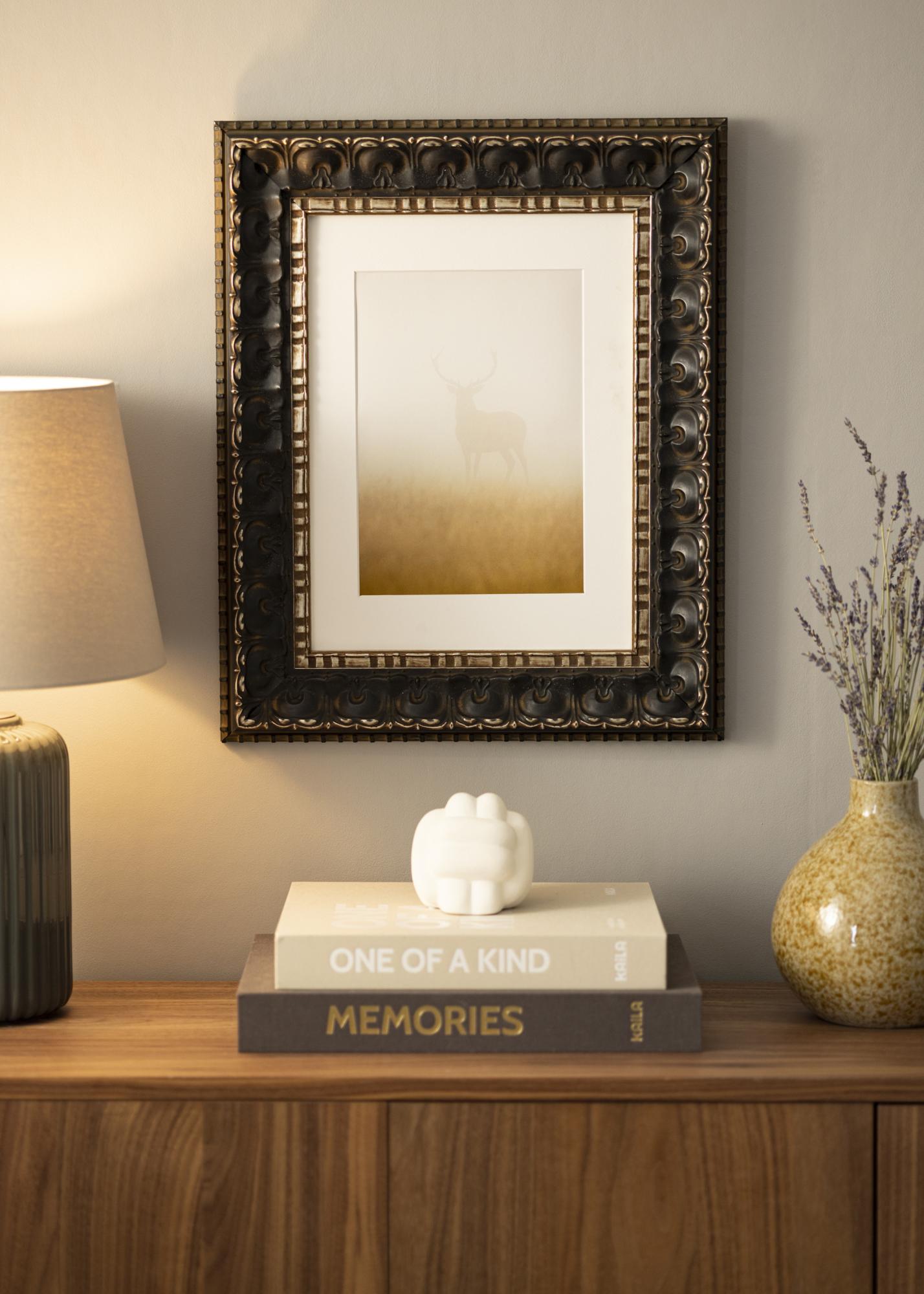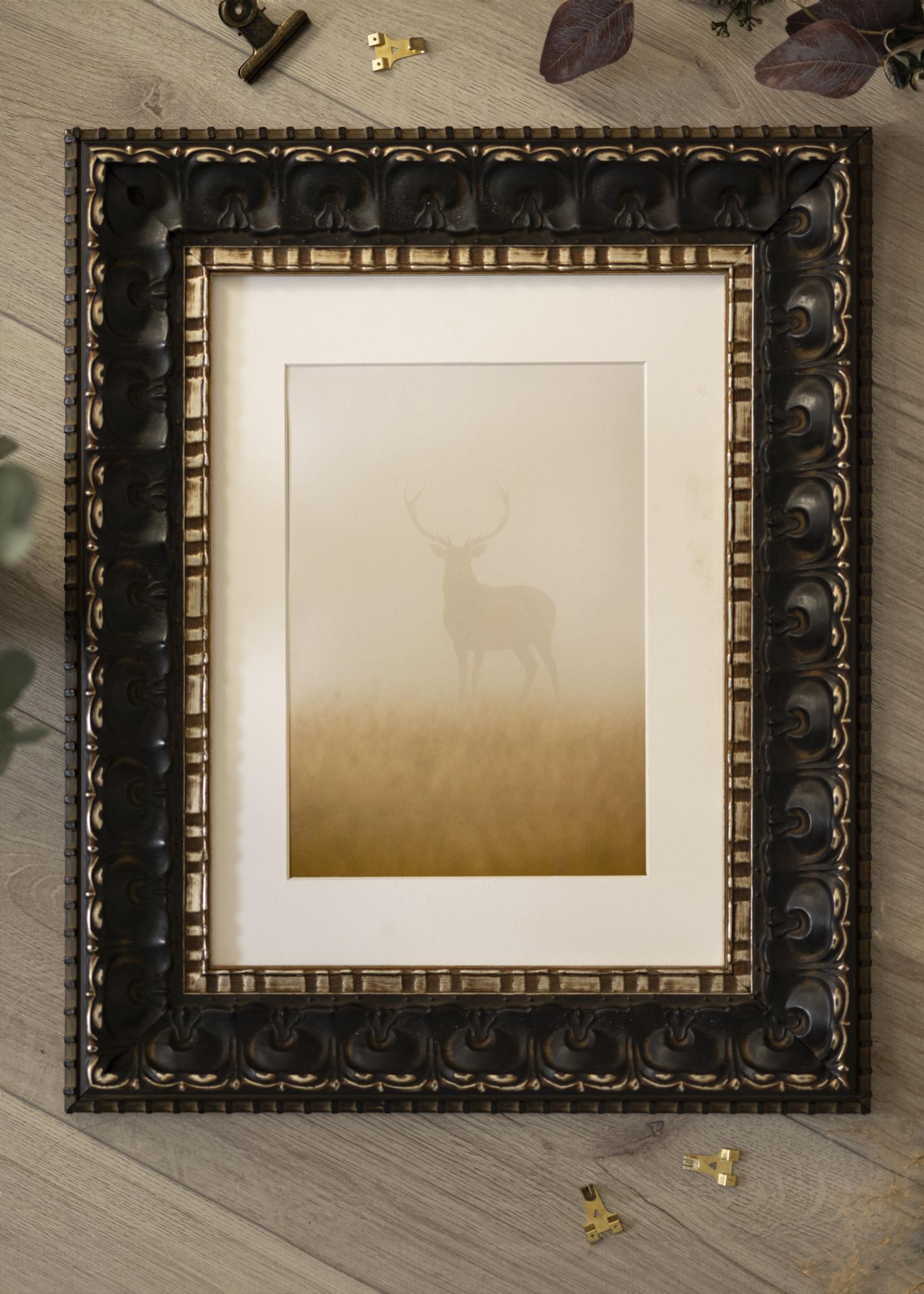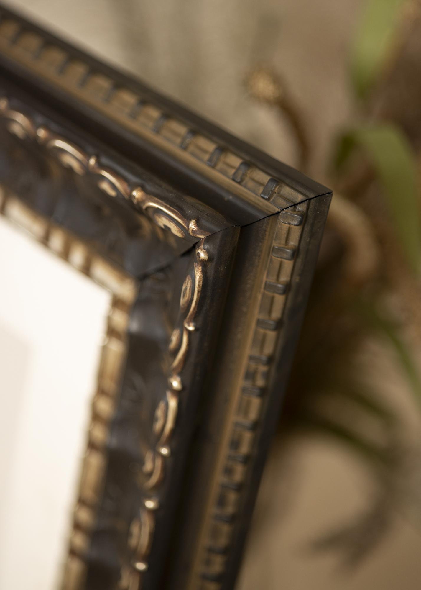 Rahmen Skokloster Schwarz ist die perfekte Lösung für alle, die nach einer eleganten und klassischen Einrahmung für ihre Bilder oder Kunstwerke suchen. Mit seiner tiefschwarzen Basis und antiken Golddetails bietet dieser Bilderrahmen ein anspruchsvolles und luxuriöses Gefühl, das in jedes Zuhause passt. Die detaillierten Muster entlang der Kanten verstärken sein zeitloses Design und verleihen einen Hauch von antikem Charme.