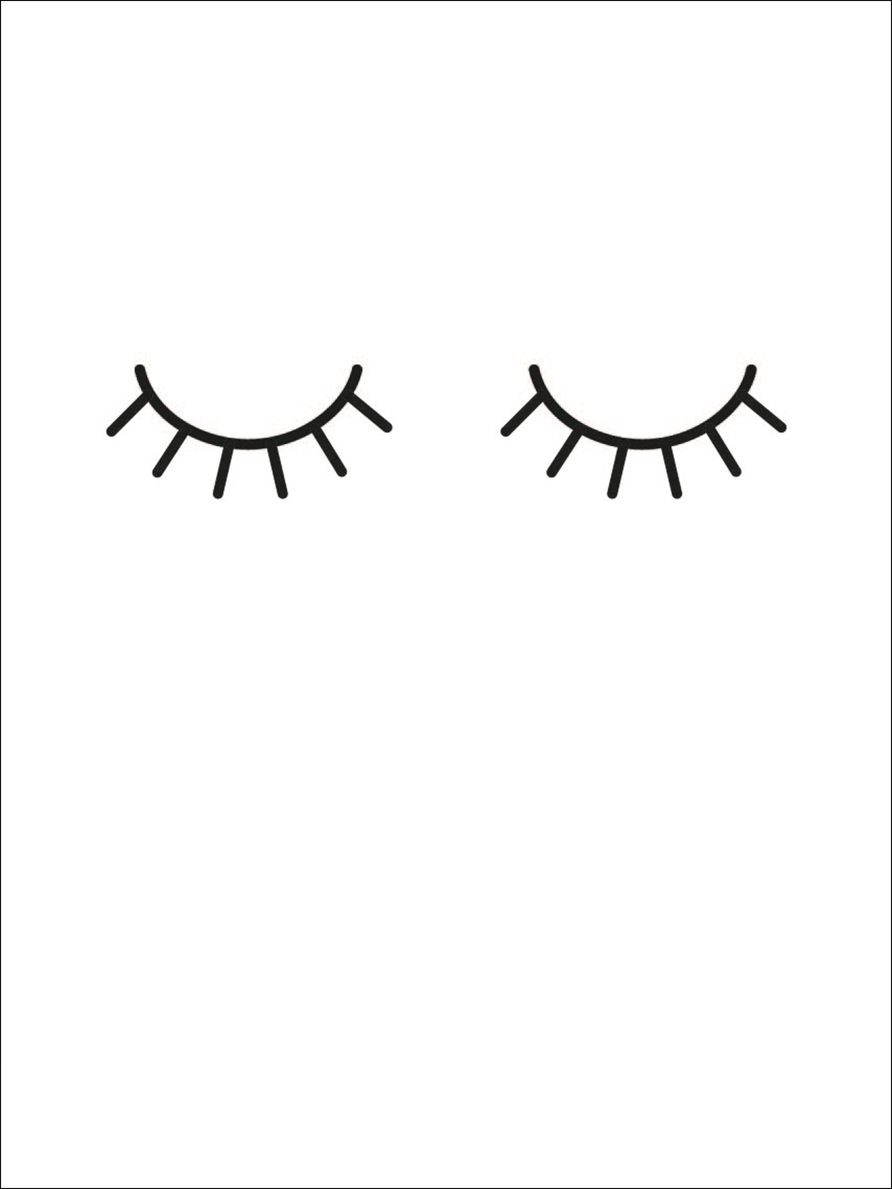 Setzen Sie auf schlichten und einfachen Stil im Kinderzimmer mit diesem süßen Poster! Das Motiv zeigt geschlossene Augen mit langen Wimpern. Da es schwarz-weiß ist, lässt es sich einfach mit Rahmen und anderer Einrichtung kombinieren.