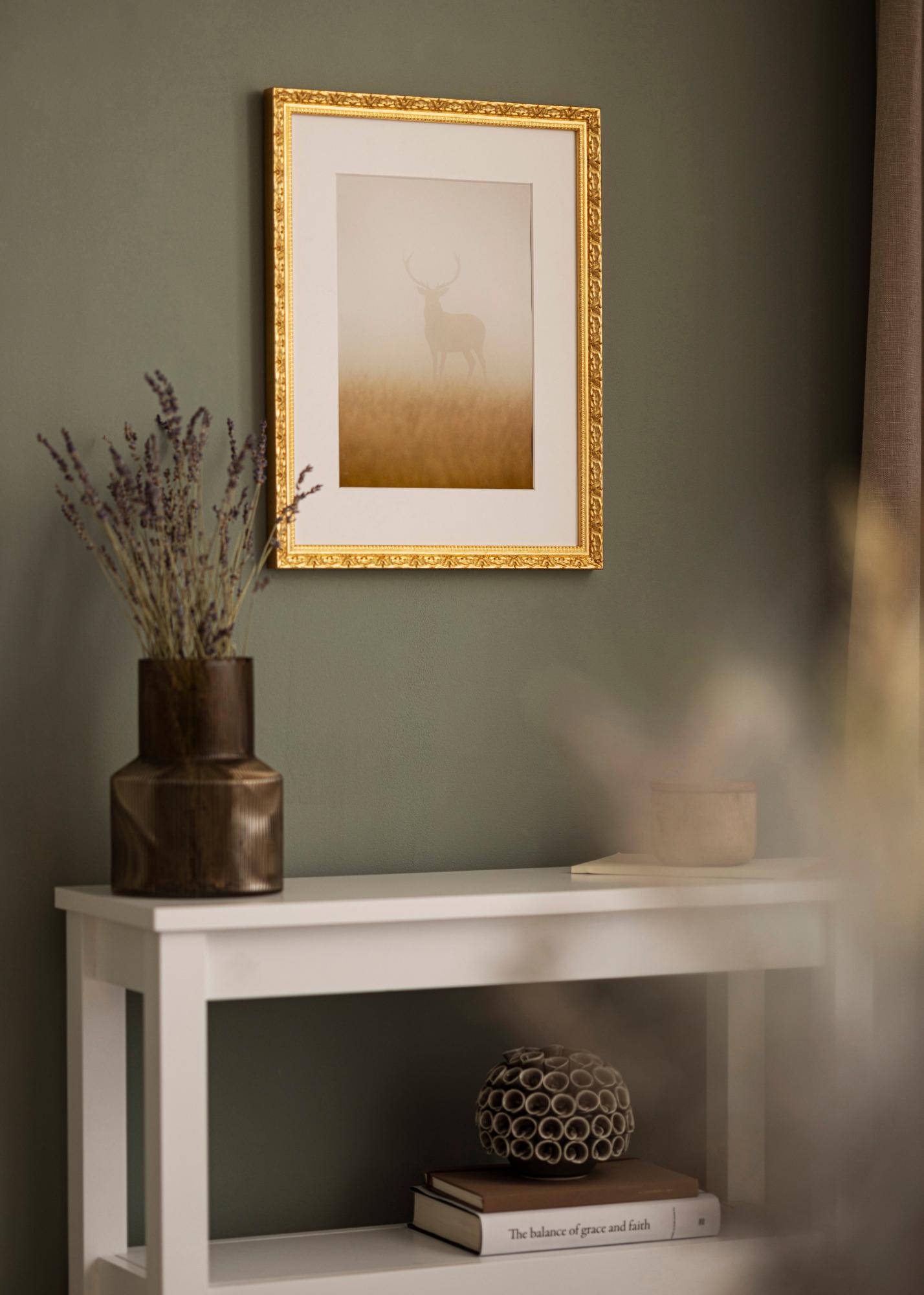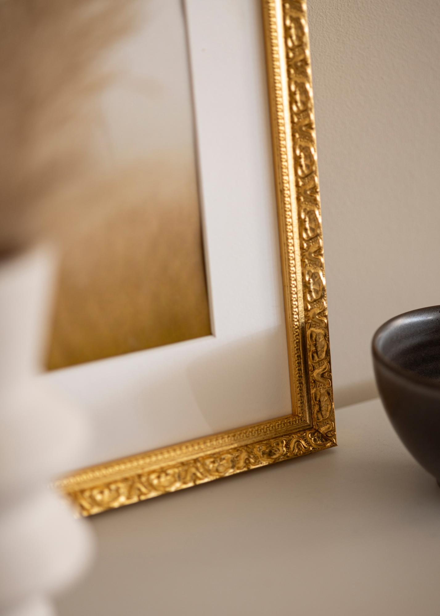 Stilvoller, retro-inspirierter Goldrahmen von hoher Qualität mit exklusivem Design, hergestellt in Italien. Verleiht deinen schönsten Fotos zusätzlichen Charme, vor allem, wenn er mit einem Passepartout kombiniert wird (nicht enthalten).