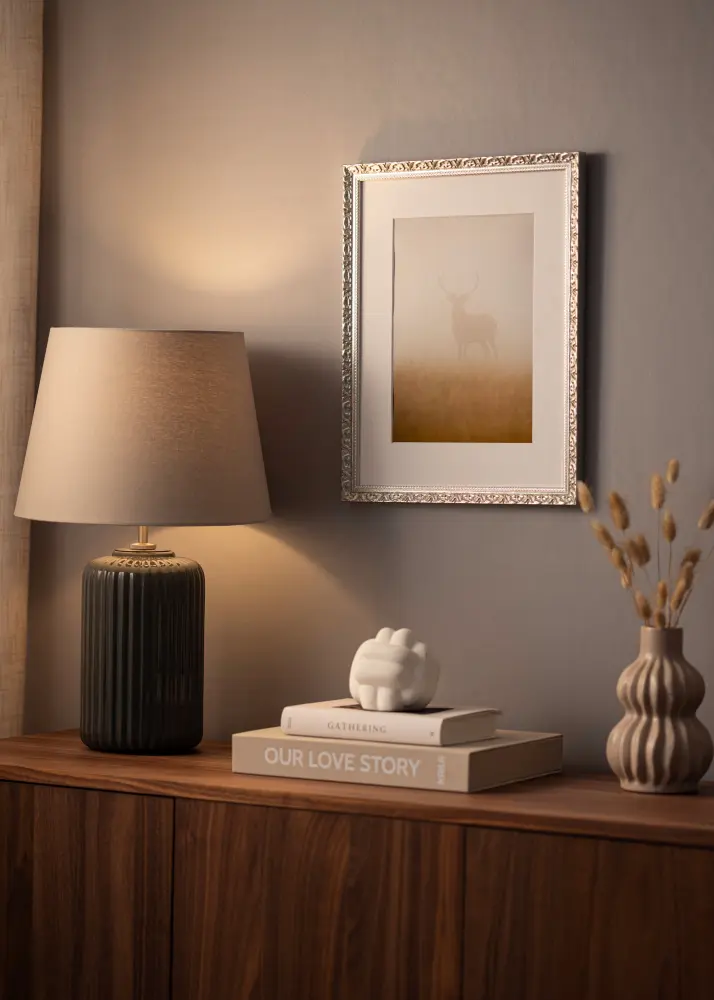 Stilvoller, retro-inspirierter Silberrahmen von hoher Qualität mit exklusivem Design, hergestellt in Italien. Verleiht deinen schönsten Fotos zusätzlichen Charme, vor allem, wenn er mit einem Passepartout kombiniert wird (nicht enthalten).