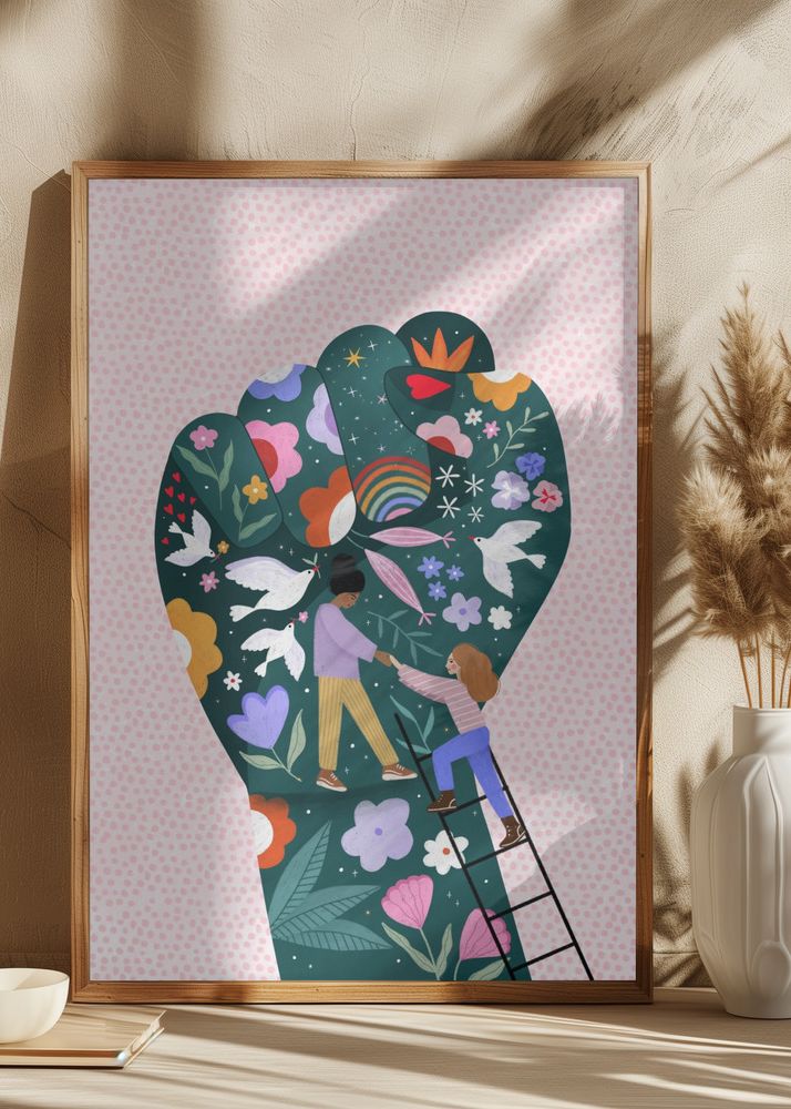 Trendy Poster, das wunderbar mit anderen Bildern kombiniert werden kann, z.B. für eine tolle Bilderwand. Und warum nicht mit einem passendem Bilderrahmen komplettieren Rahmen oder Posteraufhänger.