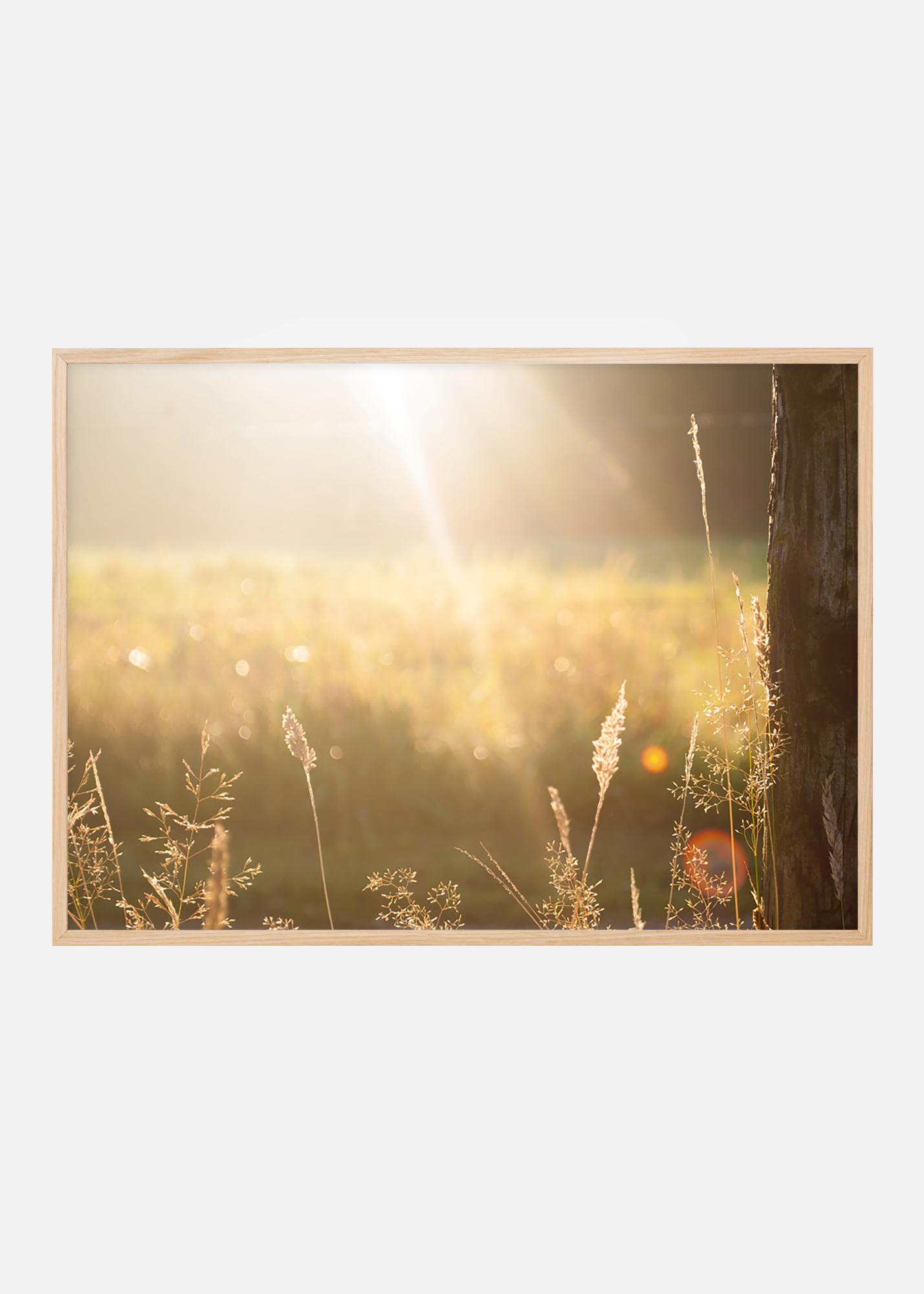 Poster mit einem sepiafarbenen Gegenlichtfoto auf einer Spätsommerwiese mit säenden Grashalmen im Vordergrund. Das Motiv ist ruhig und man kann fast das Zirpen der Heuschrecken in dem lauen Sommerabend hören. Das poster passt gut in alle Arten von Einrichtungsstilen mit seiner gedämpften Farbskala und wird schön, zusammen mit anderen Naturmotiven aufgehängt.