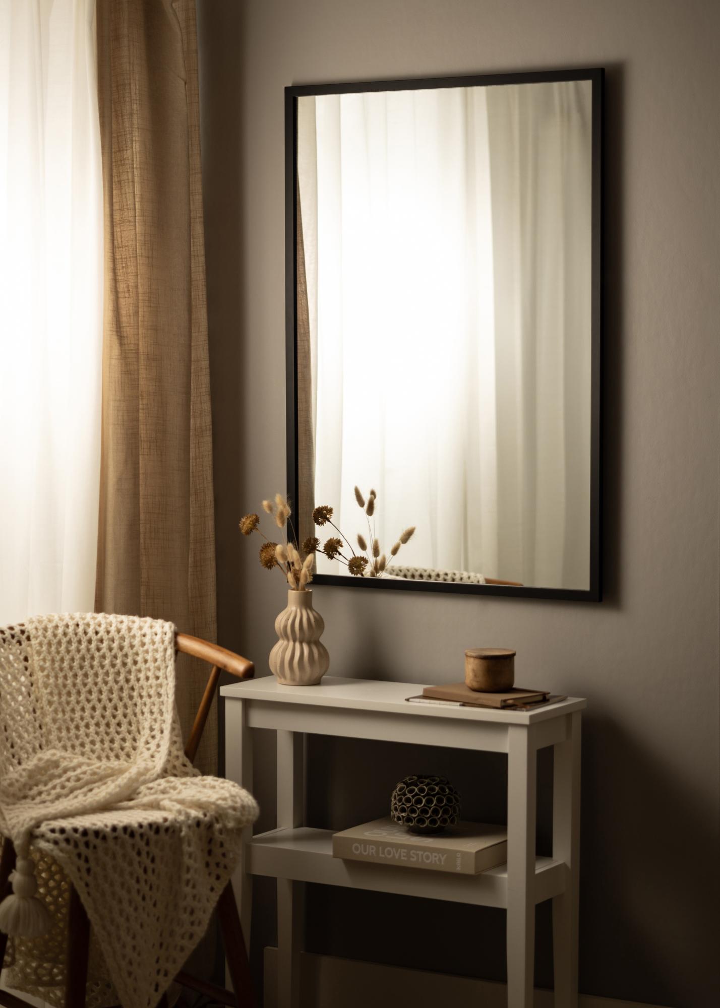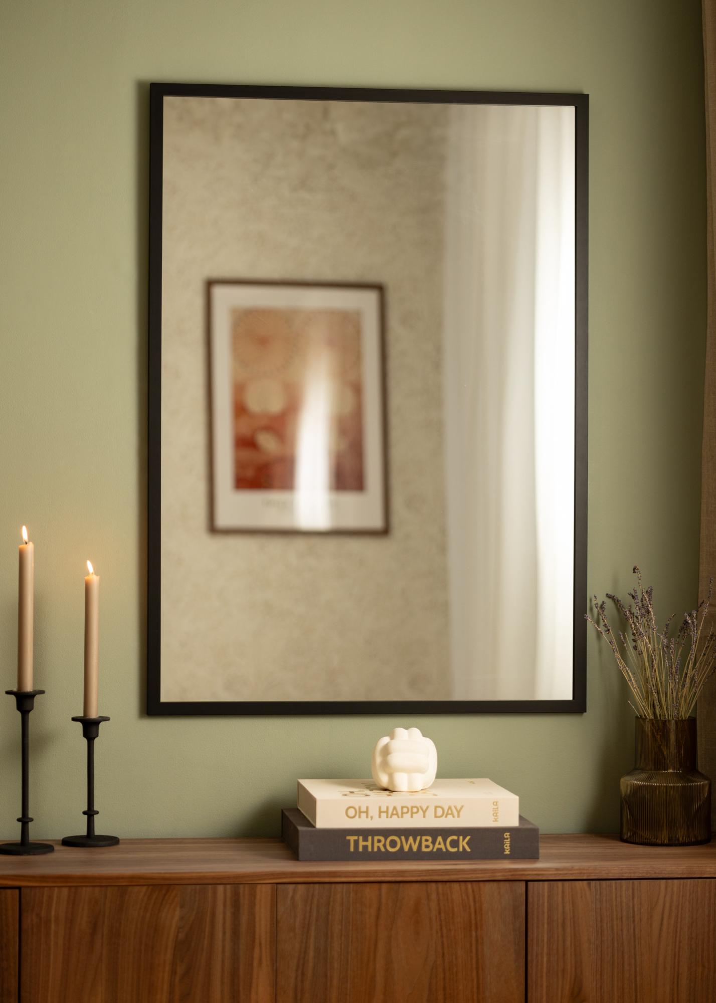 Der Wohnspiegel Black Wood ist eine ausgezeichnete Wahl für alle, die nach einem klassischen Wandspiegel mit schlichtem, schnörkellos schwarzem Rahmen suchen. Der Rahmen dieses Spiegels ist aus bemaltem Abachi-Holz gefertigt. Der Spiegel selbst besteht aus ungefärbtem Spiegelglas. Die 22 mm breite Rahmenleiste überzeugt durch das gerade Vierkant-Profil, das den Spiegel gekonnt einrahmt, ohne sich in den Vordergrund zu drängen.