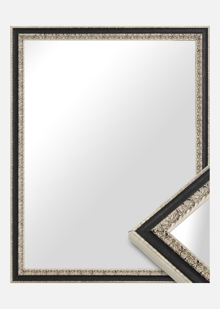 Spiegel Drottningholm Silber II ist ein eleganter und stilvoller Spiegel, der nach Ihren eigenen Maßen gefertigt wird. Mit seiner schönen silbernen Farbe und dem schwarzen Rand wird er zu einem auffälligen Element in jedem Raum. Die 25 mm breite Leiste verleiht dem Spiegel einen markanten Rahmen, während die 17 mm tiefe Tiefe ein Gefühl von Tiefe und Dimension schafft.