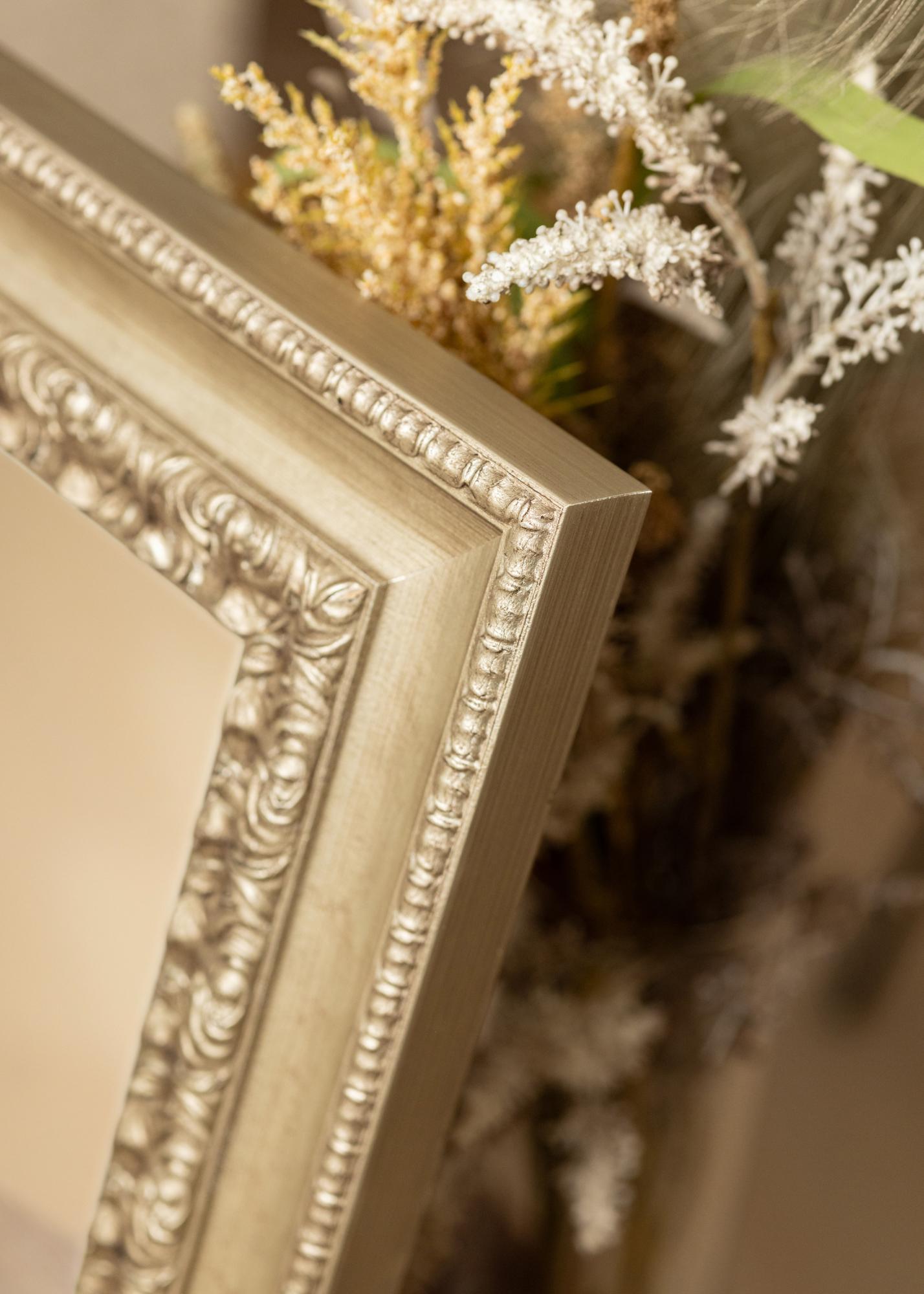 Spiegel Drottningholm Silber III ist ein maßgefertigter Spiegel, der von uns hergestellt wird, um genau Ihren Bedürfnissen zu entsprechen. Mit seiner eleganten Silberfarbe und einer 68 mm breiten Rahmenleiste wird dieser Spiegel zu einem stilvollen Element in jedem Raum. Der Rahmen ist aus Holz gefertigt und hat eine Tiefe von 30 mm, was ein robustes und solides Gefühl vermittelt.