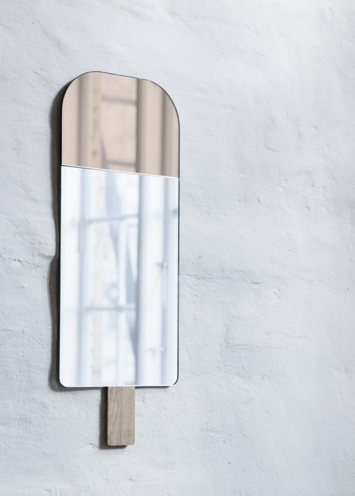Der Spiegel besteht aus hochwertigem Spiegelglas, der Holzstiel im unteren Teil des Spiegels ist aus unbehandelter Eiche gefertigt. Wie man es auch von vielen Stieleis-Sorten kennt, hat der Spiegel einen andersfarbig gestalteten oberen Teil.