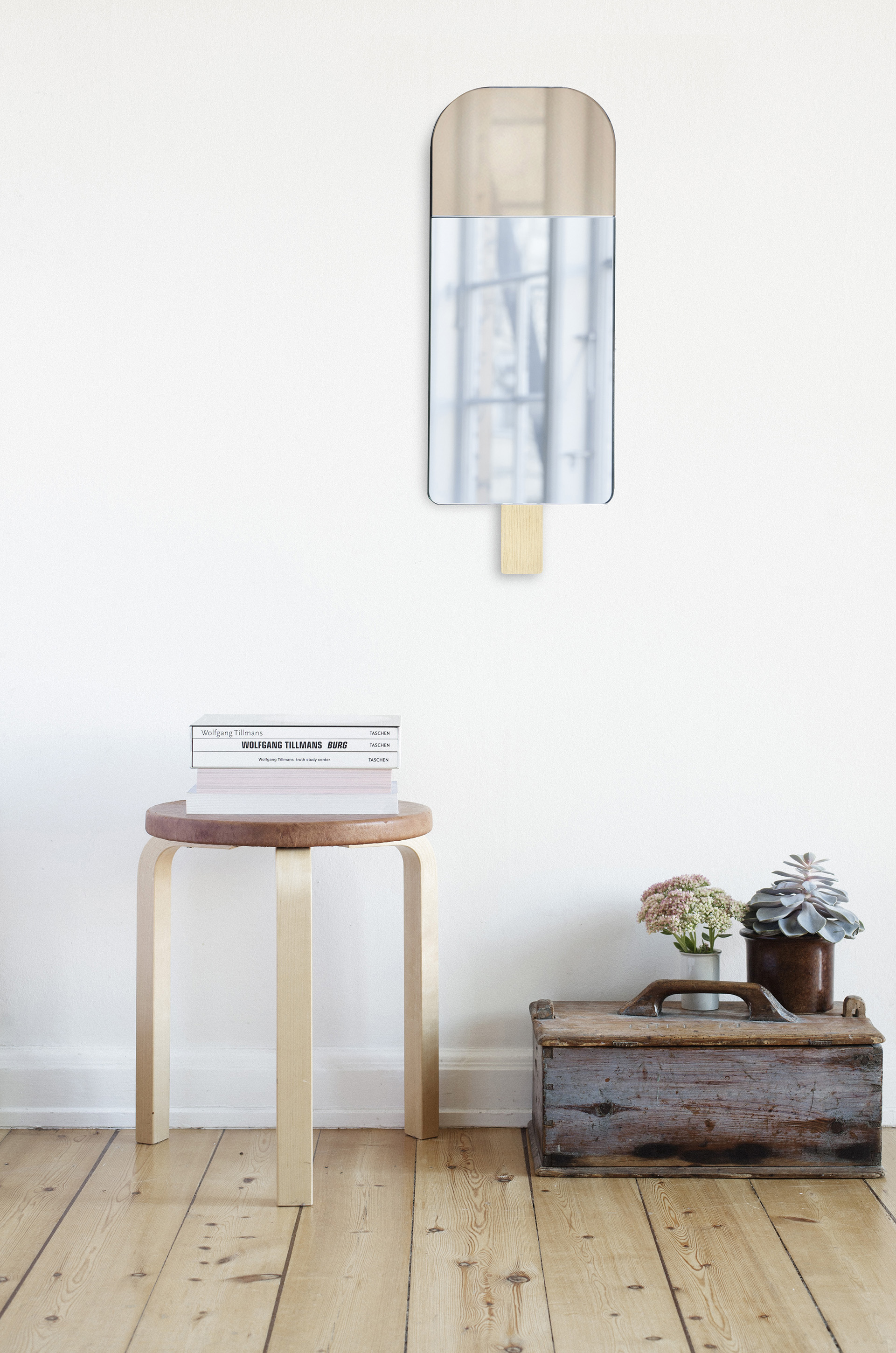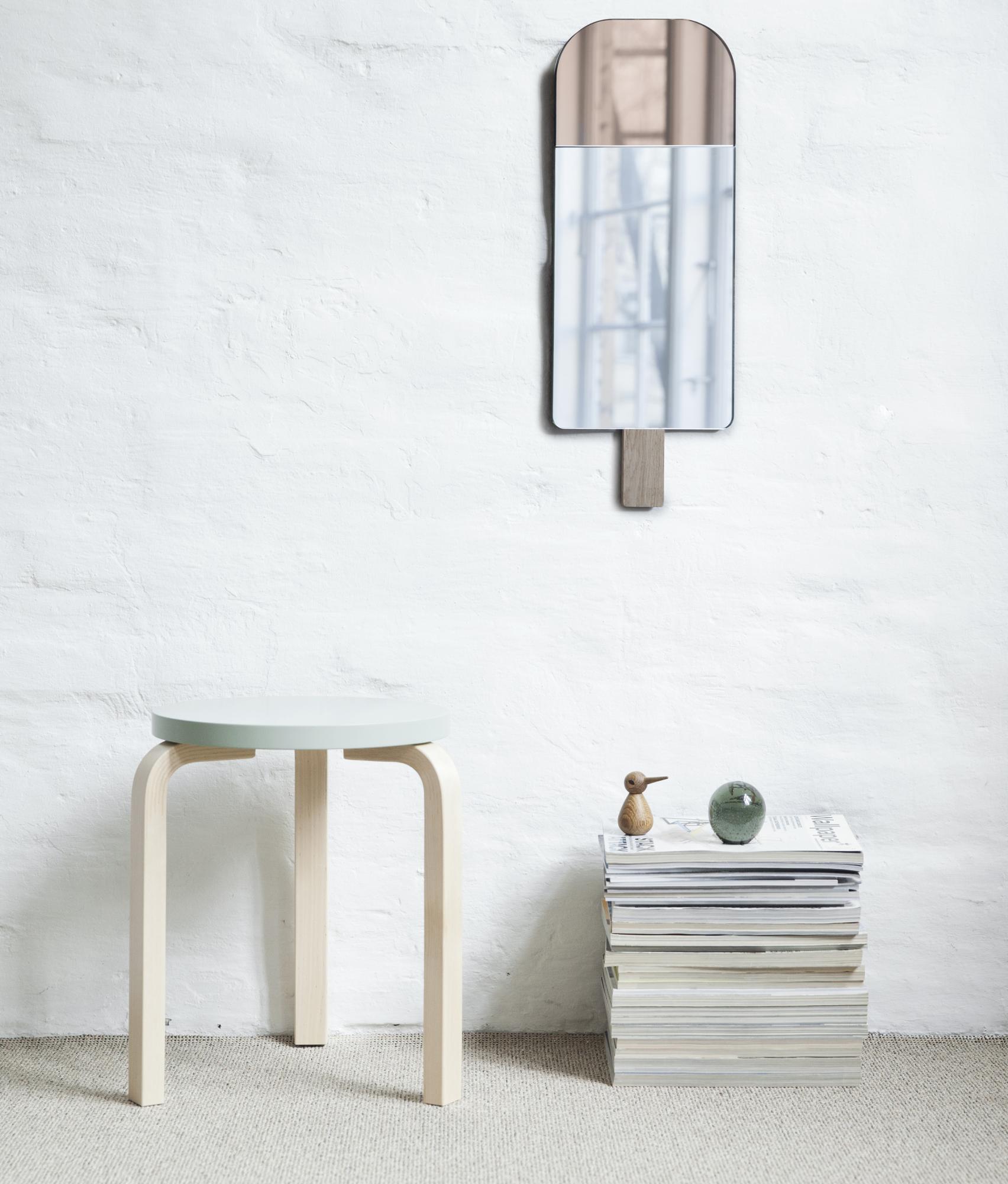 Der Stieleis-Spiegel wurde von Tor & Nicole Vitner Servé für das dänische Label Elements Optimal (EO) entworfen. Skandinavisches Design zum Wohnen und Wohlfühlen. Den Spiegel mit dem andersfarbigen oberen Teil gibt es in verschiedenen Farben; bei dieser Variante ist die Farbe des oberen Teils Warm Rose.